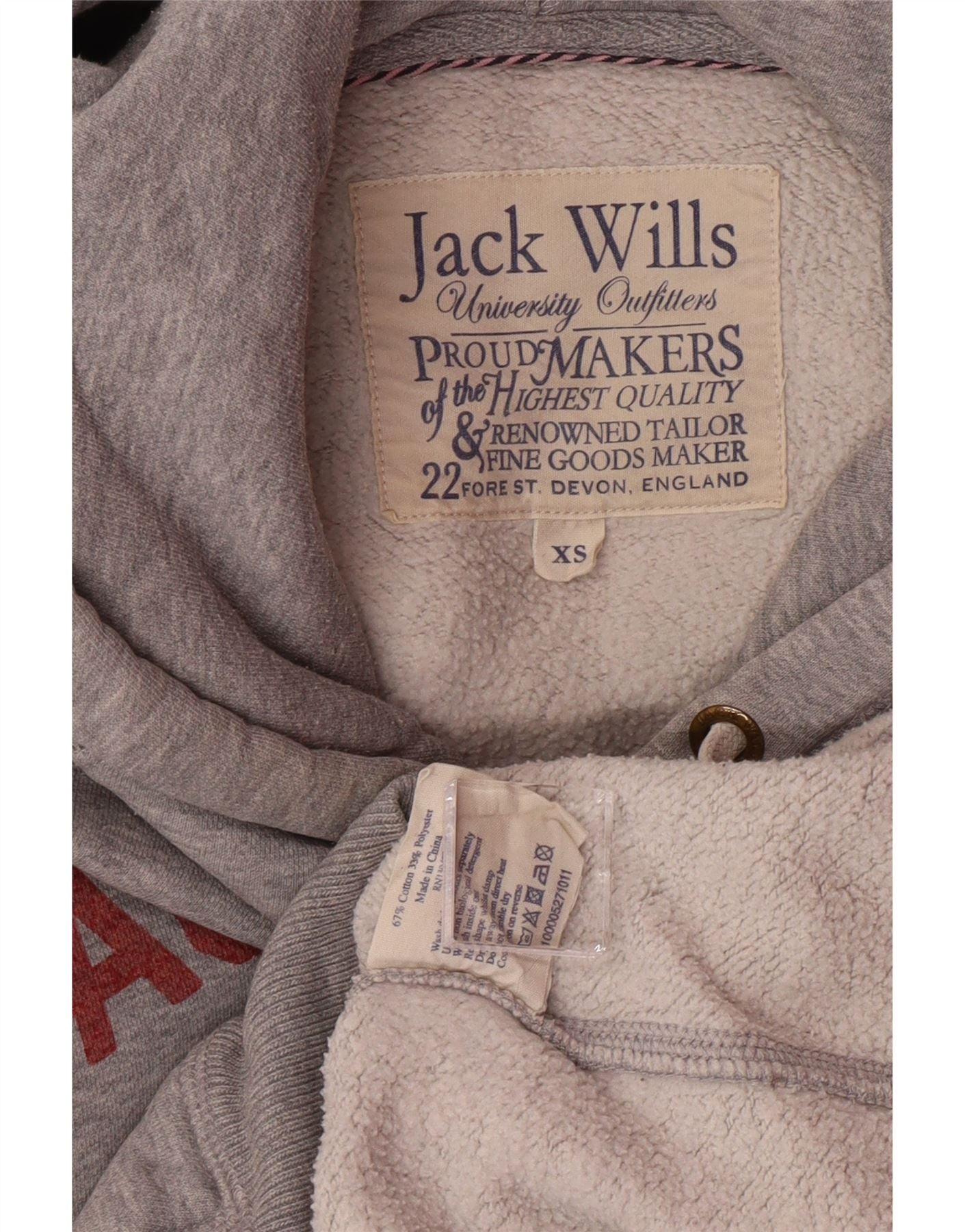 JACK WILLS Jersey con capucha gráfico para hombre XS Algodón gris