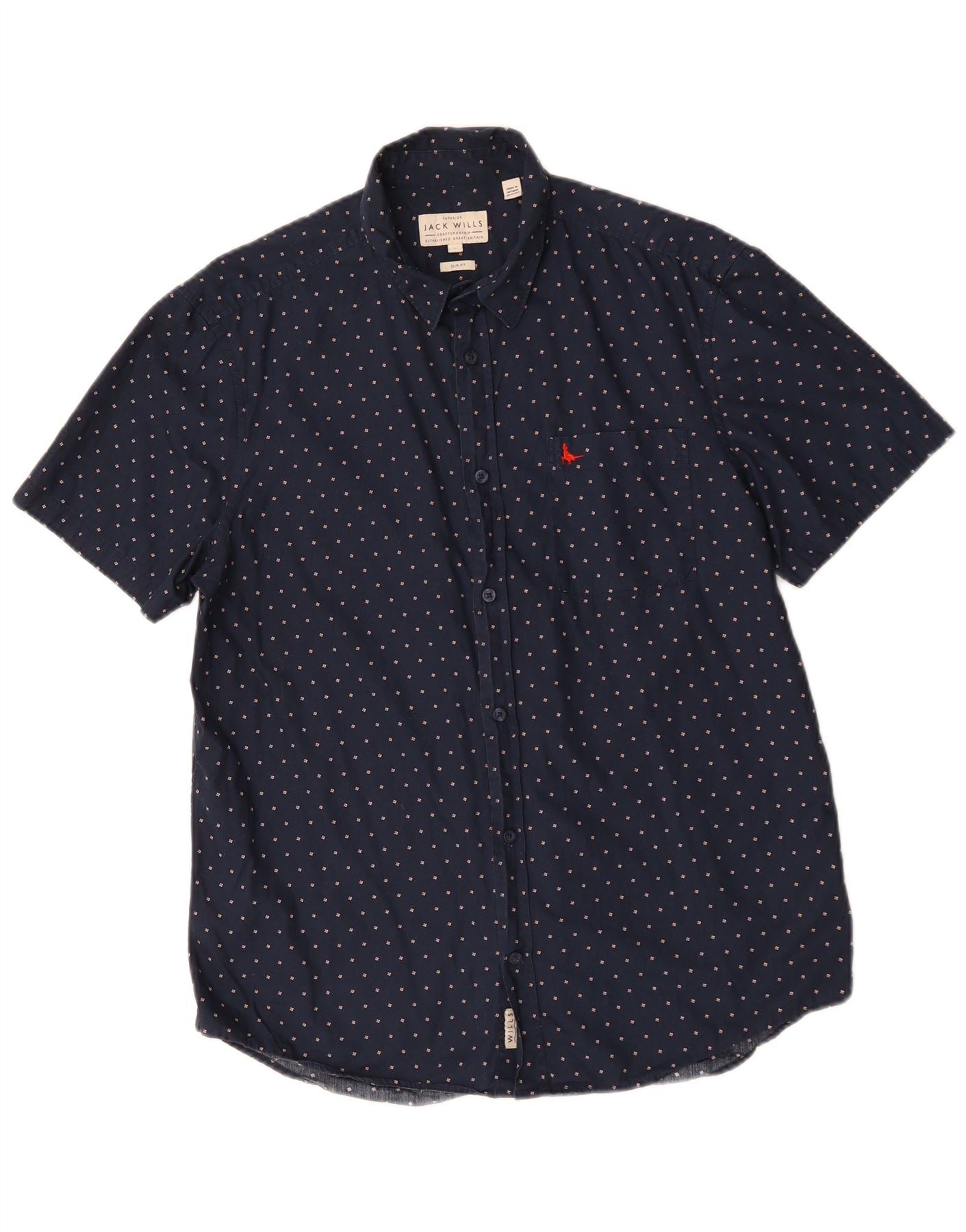 Jack Wills Camisa ajustada para hombre de algodón con lunares en azul marino grande