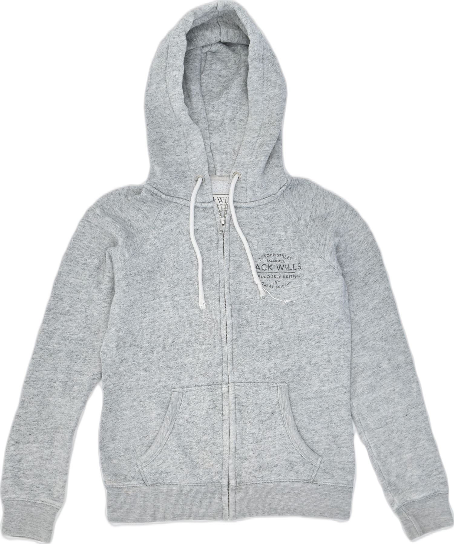 JACK WILLS Suéter con capucha y cremallera para mujer UK 8 Small Grey Flecked Classic