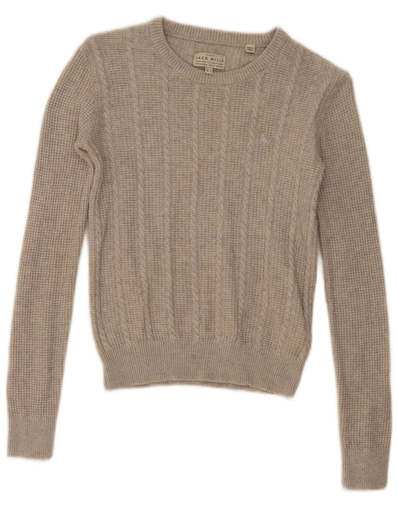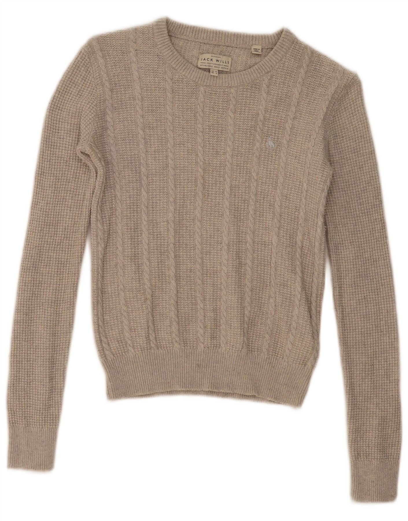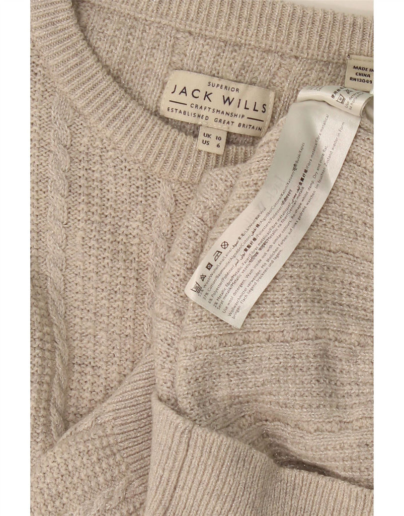 JACK WILLS Womens Boat Neck Jumper Sweater UK 10 Small Grey Flecked Wool