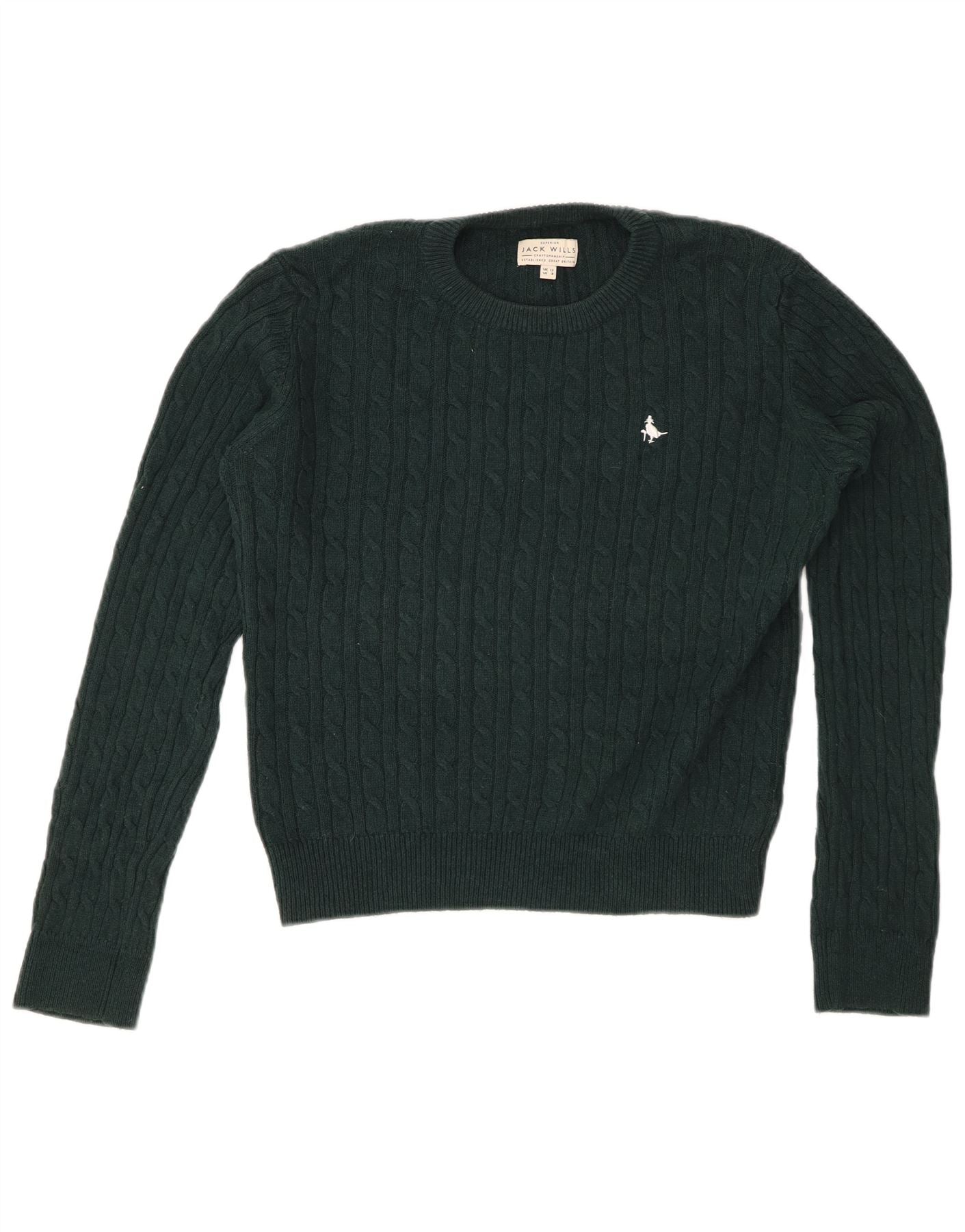 JACK WILLS Suéter corto con cuello redondo para mujer UK 12 Lana verde medio