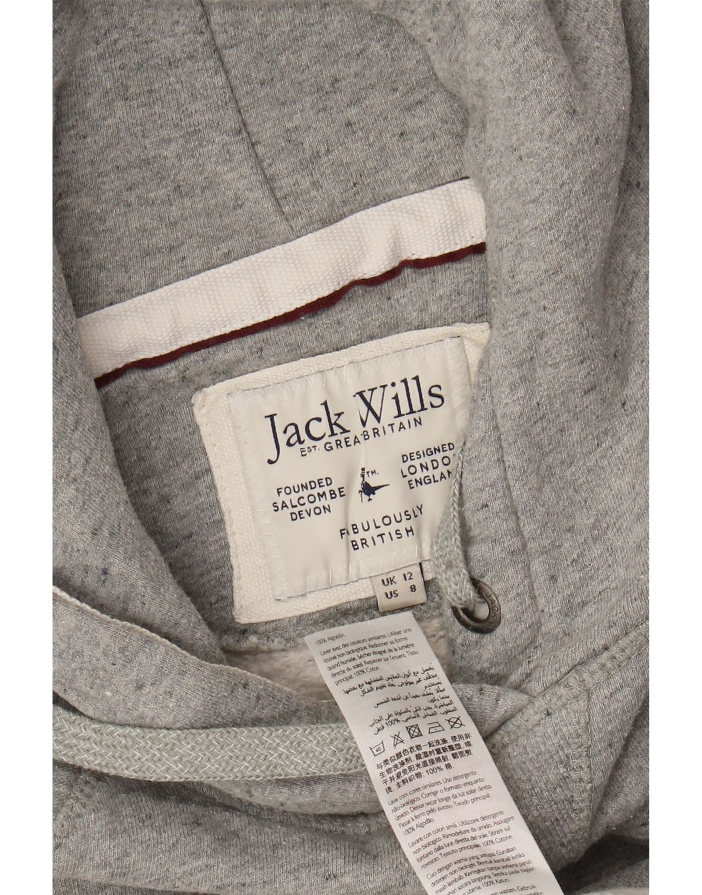 JACK WILLS Jersey con capucha gráfico para mujer Reino Unido 12 Bloque de color gris medio
