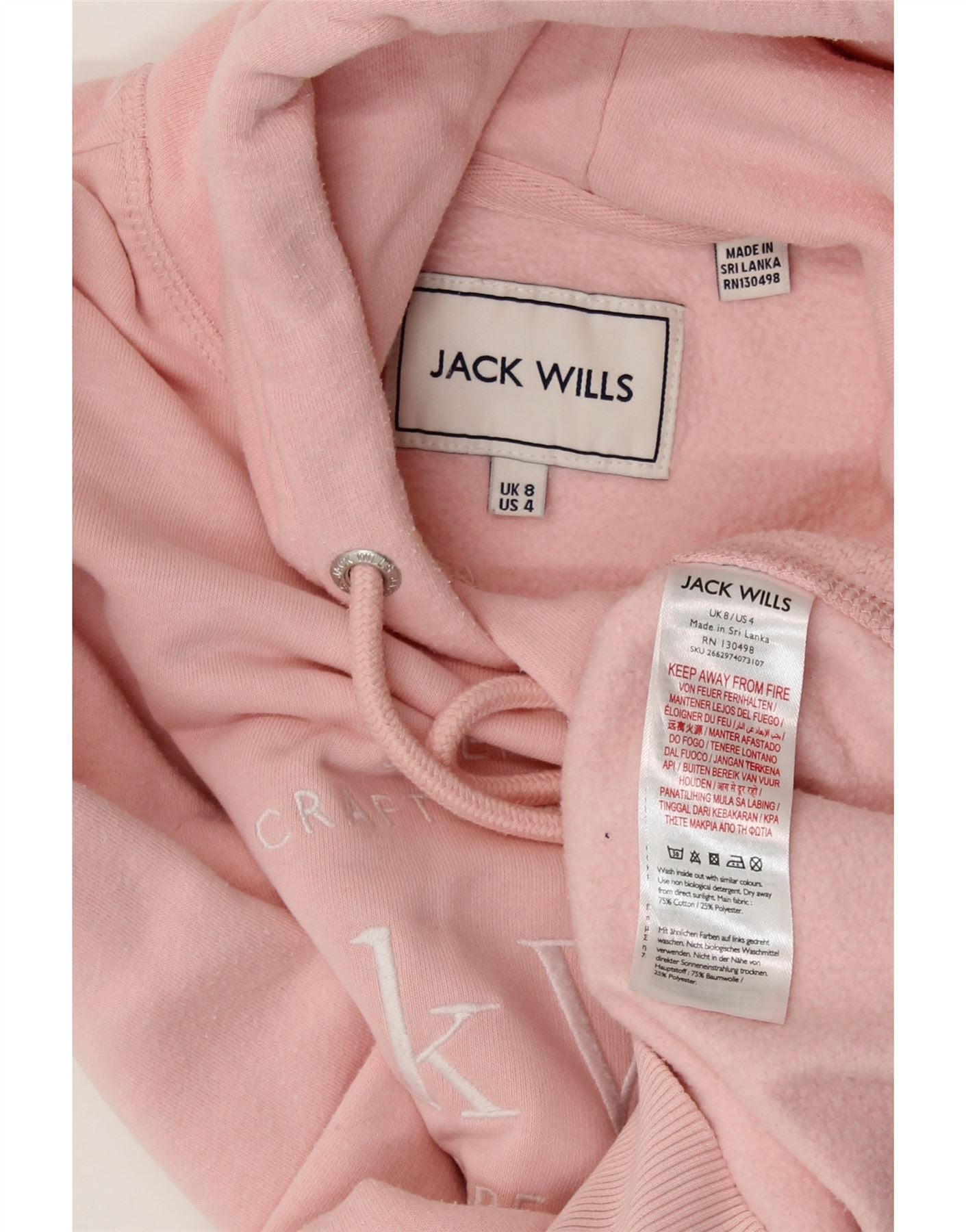 JACK WILLS Jersey con capucha de gran tamaño con gráfico para mujer UK 8 Small Pink Cotton