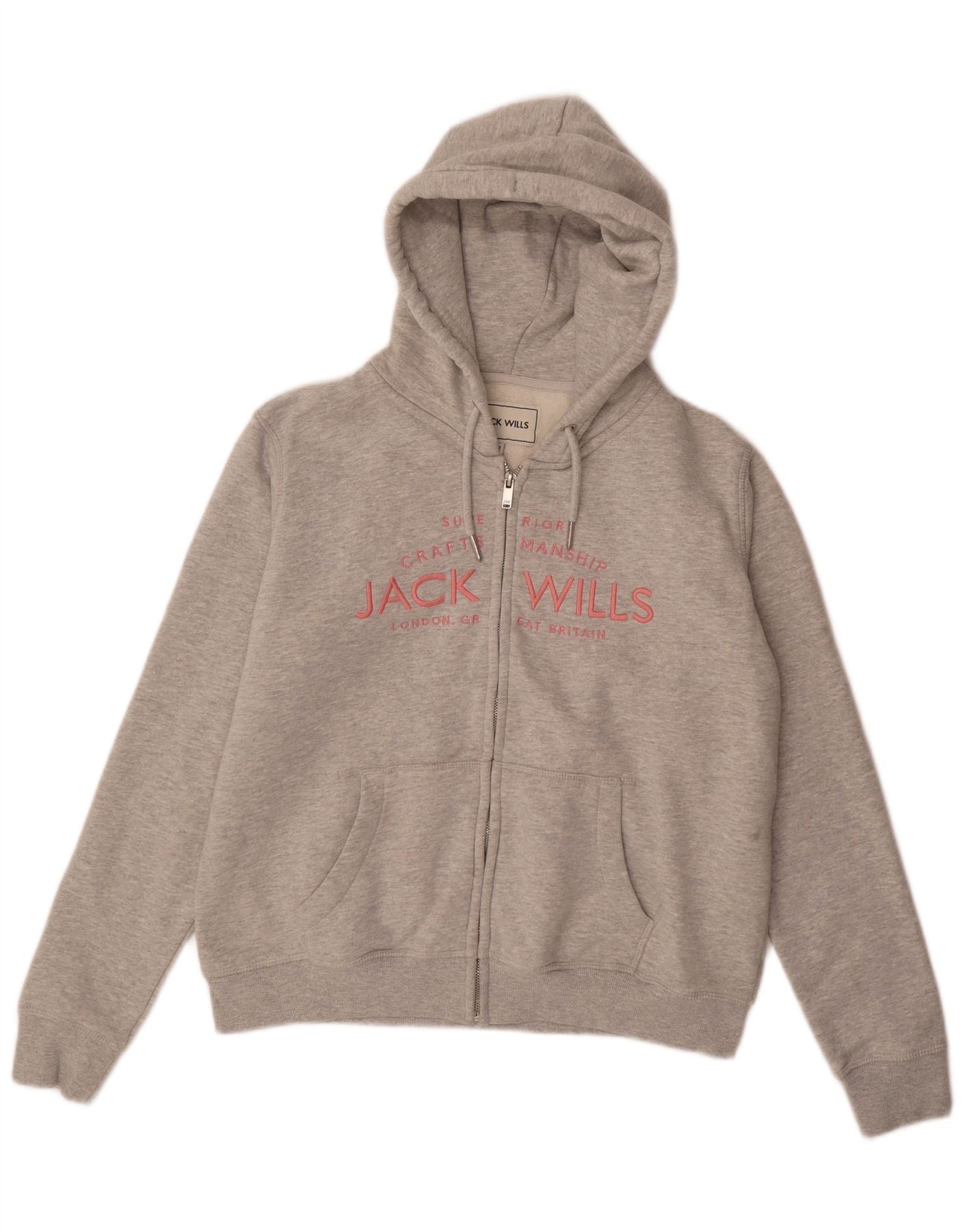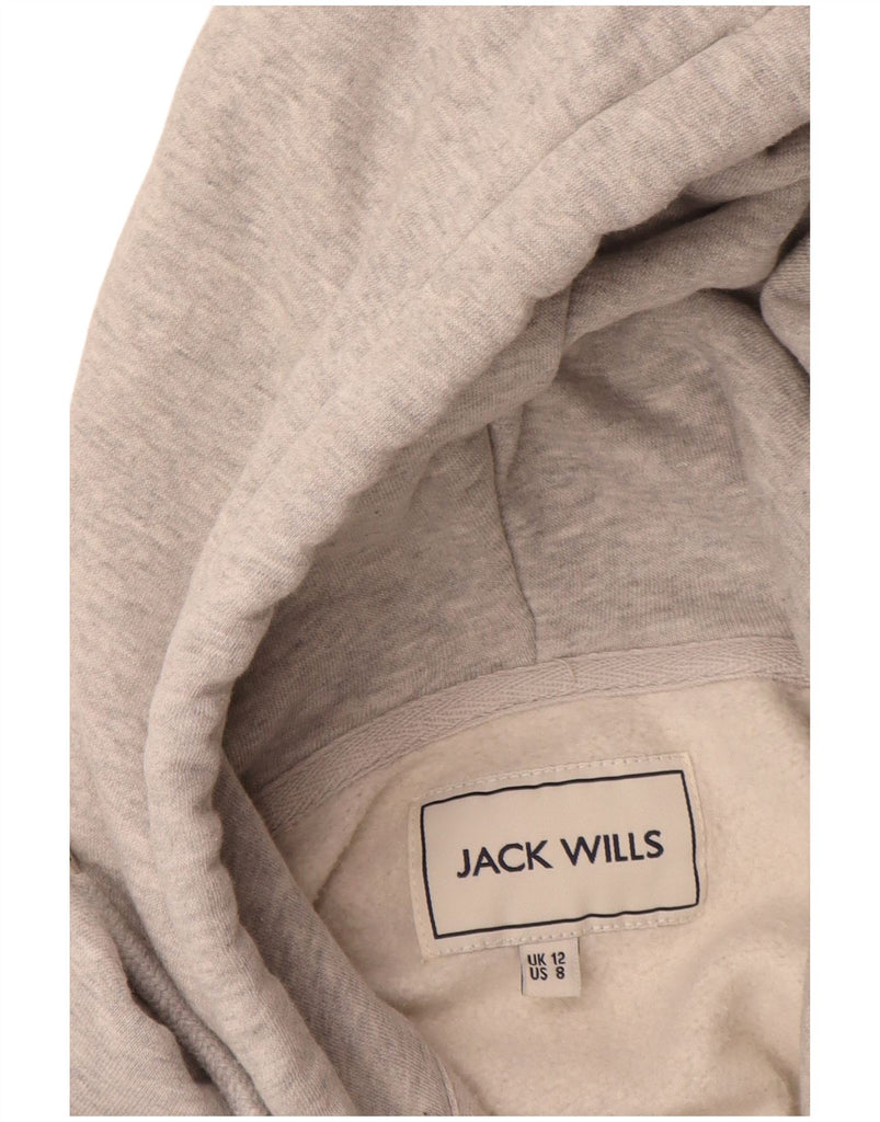 JACK WILLS Womens Graphic Zip Hoodie Sweater UK 12 Medium Grey Cotton