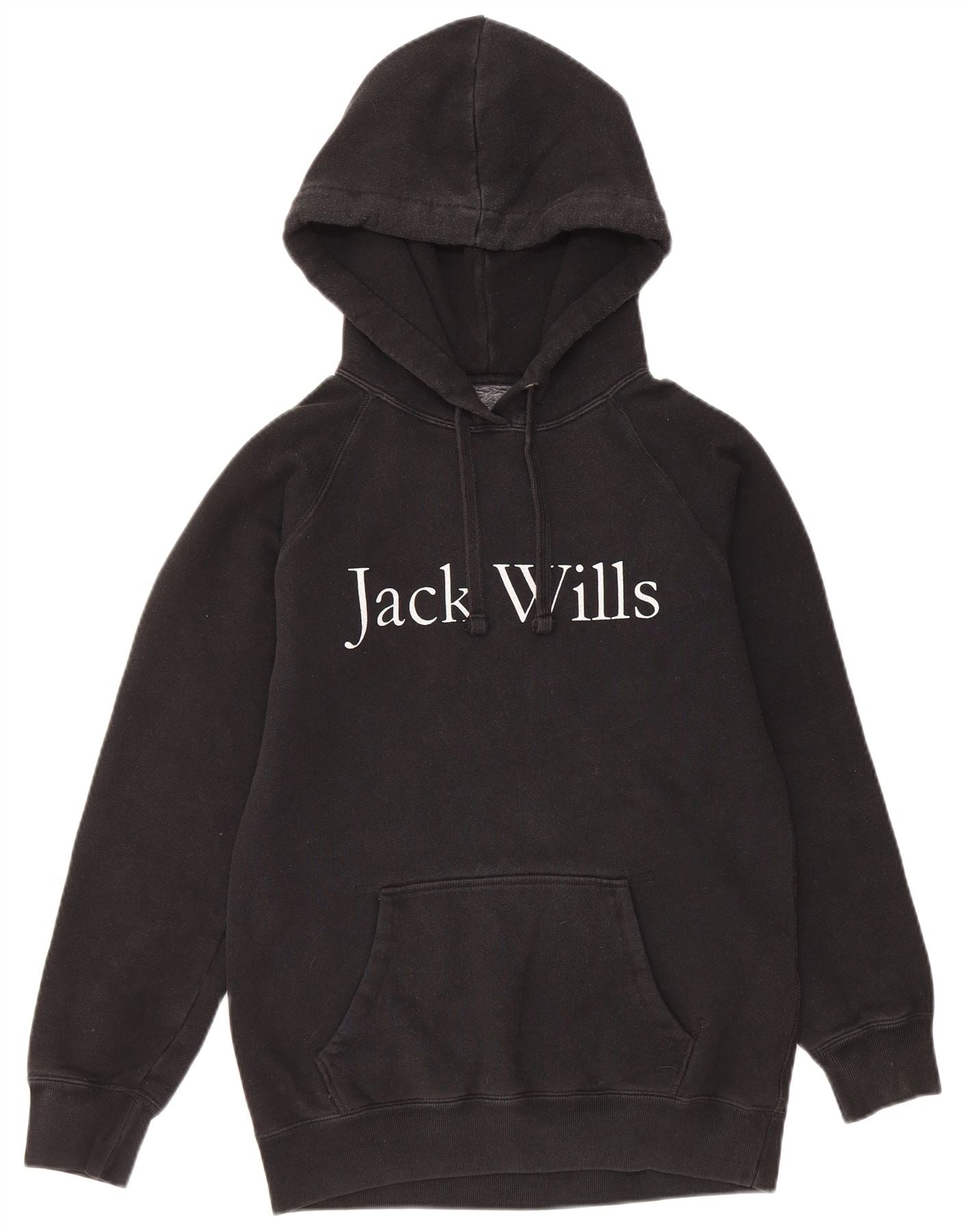 JACK WILLS Jersey con capucha gráfico extragrande para mujer UK 6 XS Algodón negro