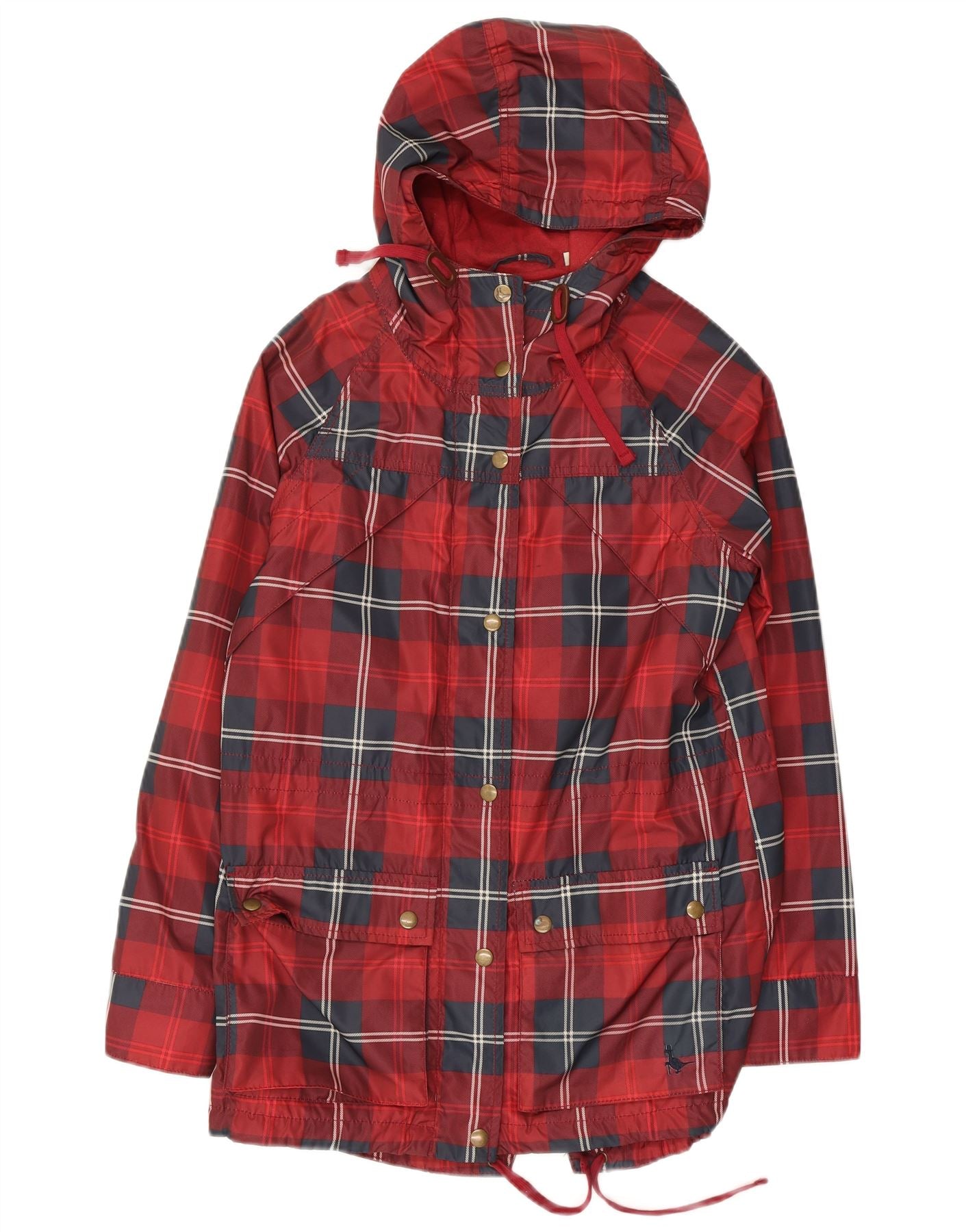 JACK WILLS Chaqueta impermeable con capucha de gran tamaño para mujer UK 6 XS Poliéster a cuadros rojos