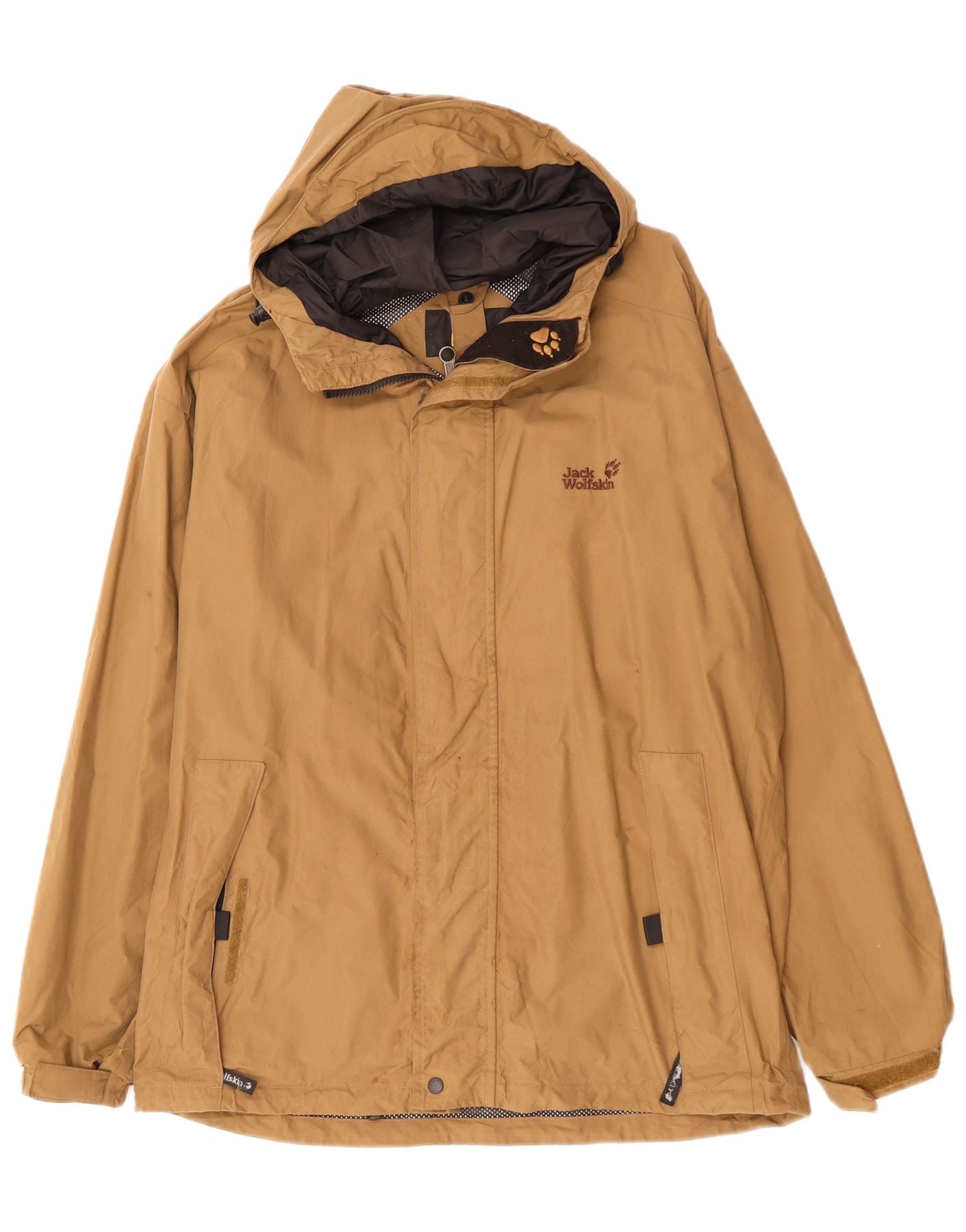 Jack Wolfskin Chaqueta impermeable con capucha para hombre UK 40/42 Large Beige Poliamida