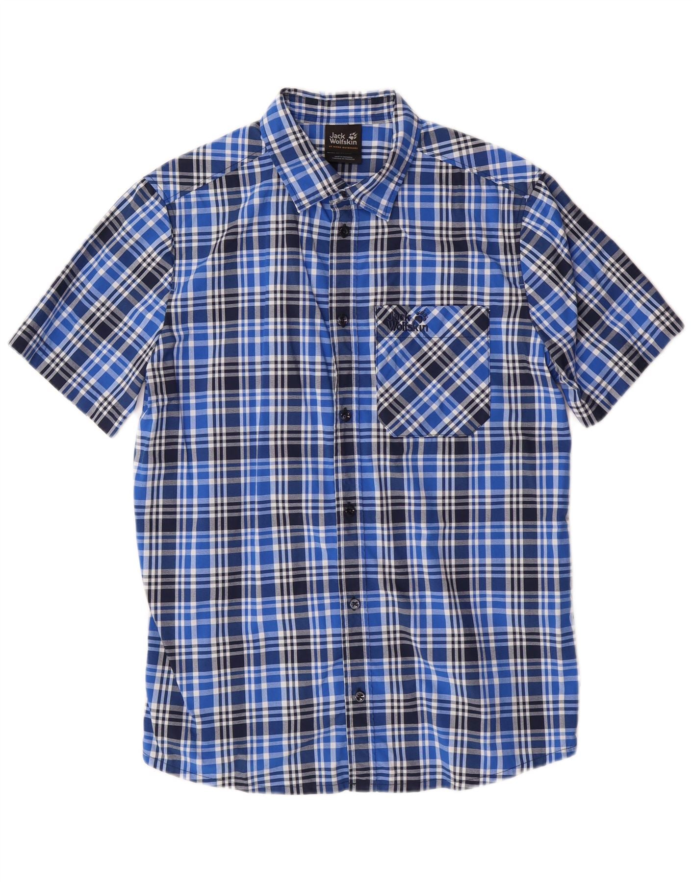 JACK WOLFSKIN Camisa de manga corta para hombre ES 36/38 Small Blue Check Poliamida