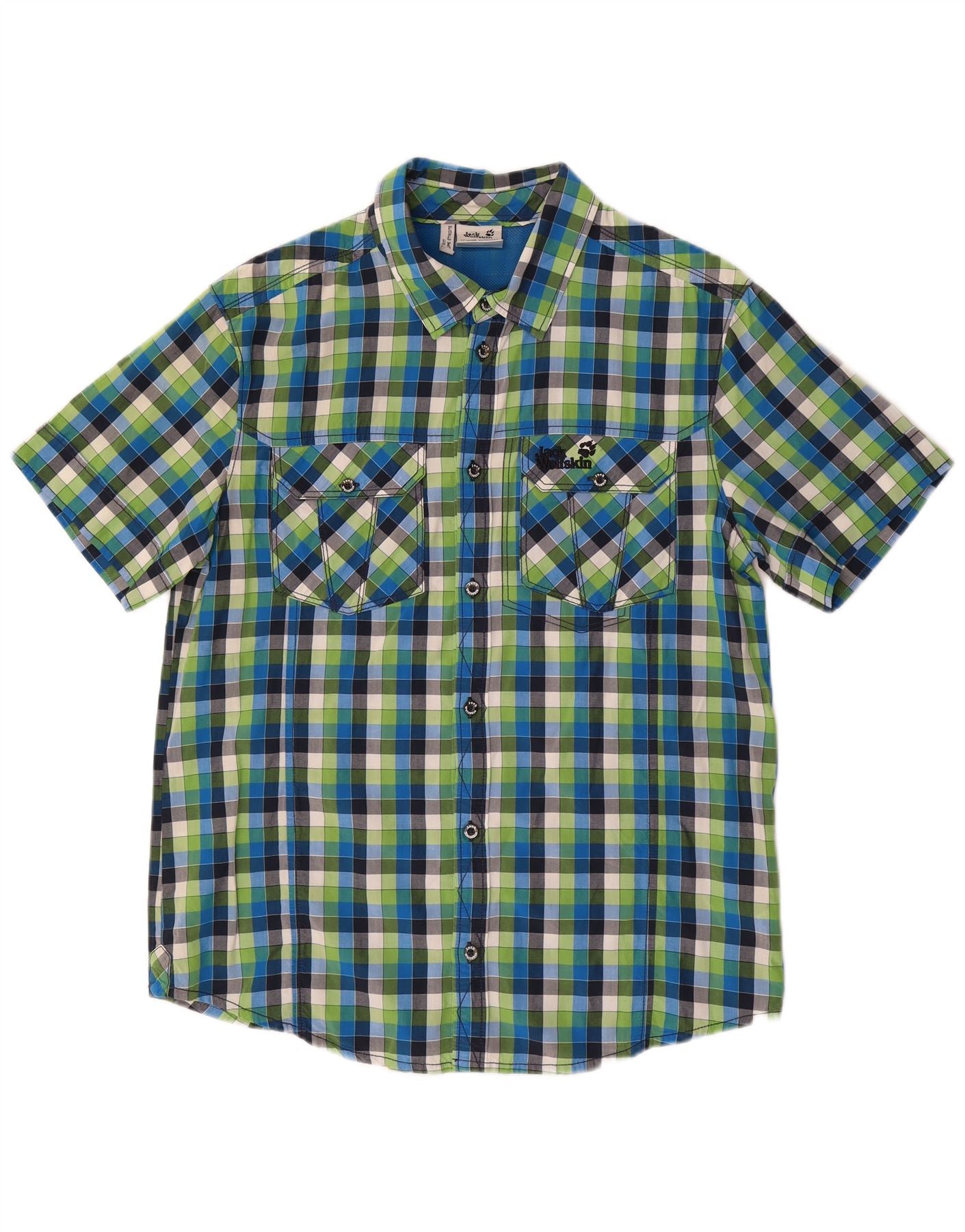 JACK WOLFSKIN Camisa de manga corta para hombre UK 40/42 Large Blue Check Cotton