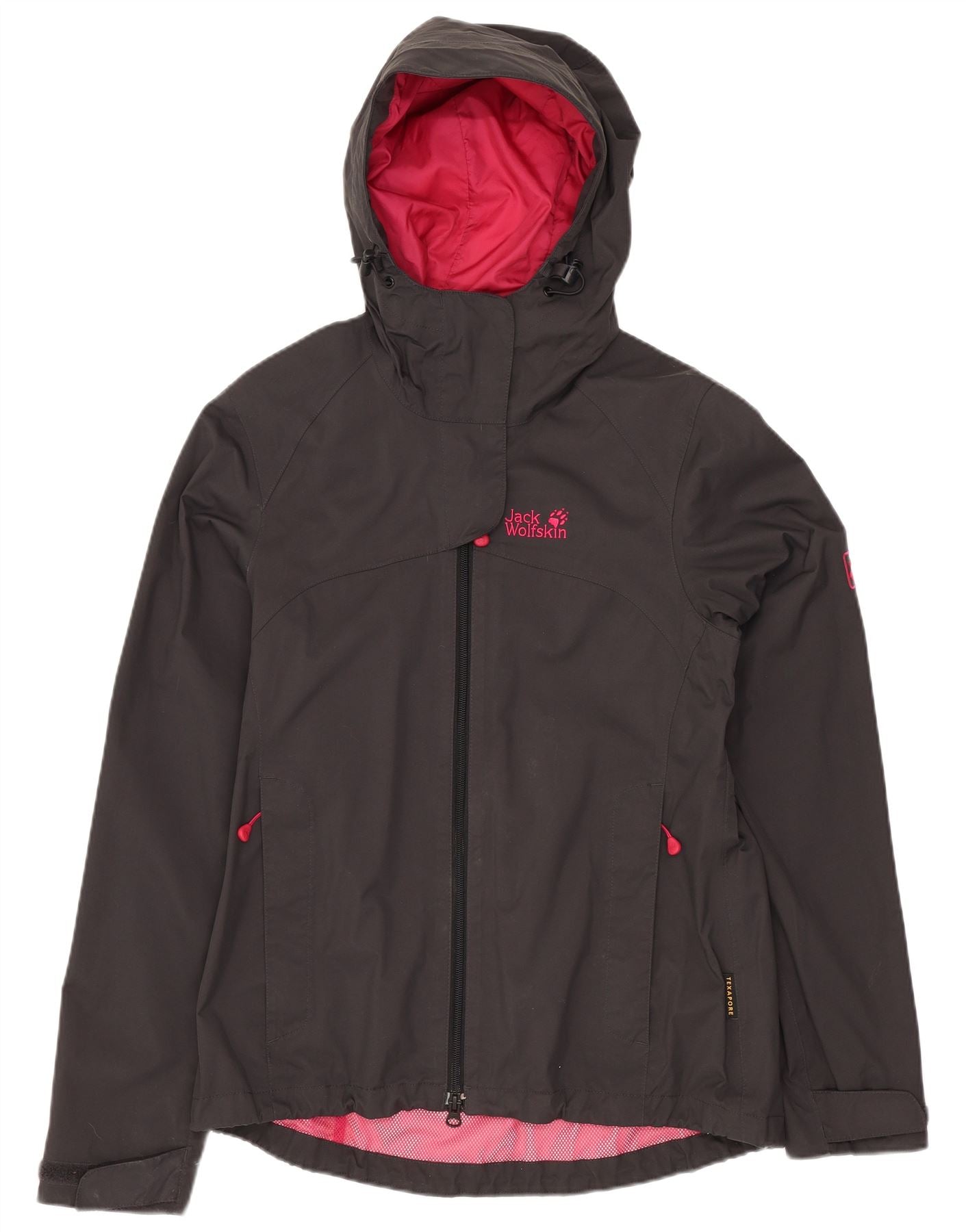 Jack Wolfskin Chaqueta impermeable con capucha para mujer UK 8/10 Small Grey Polyamide