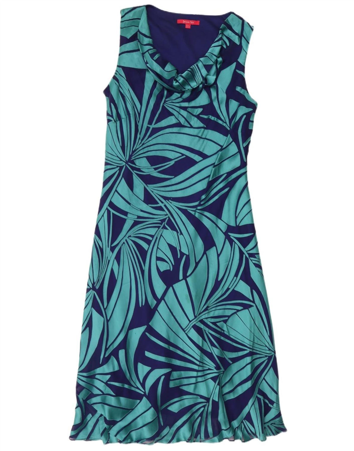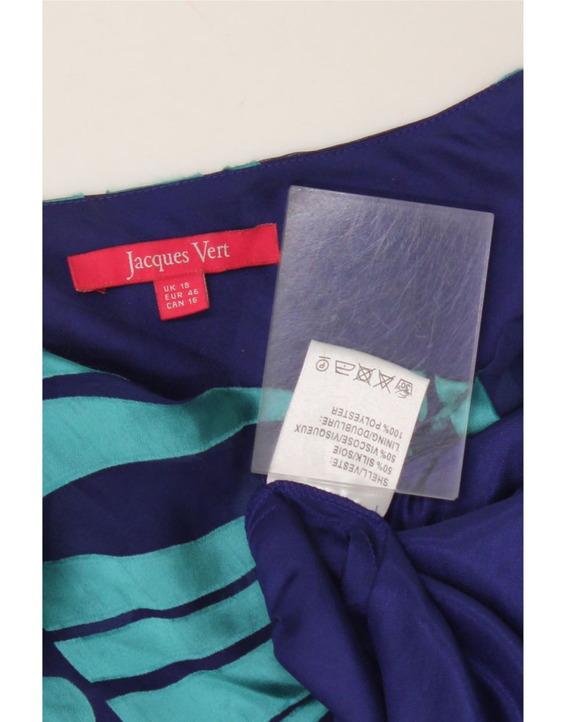JACQUES VERT Womens Sleeveless A-Line Dress UK 18 XL Blue Floral Silk
