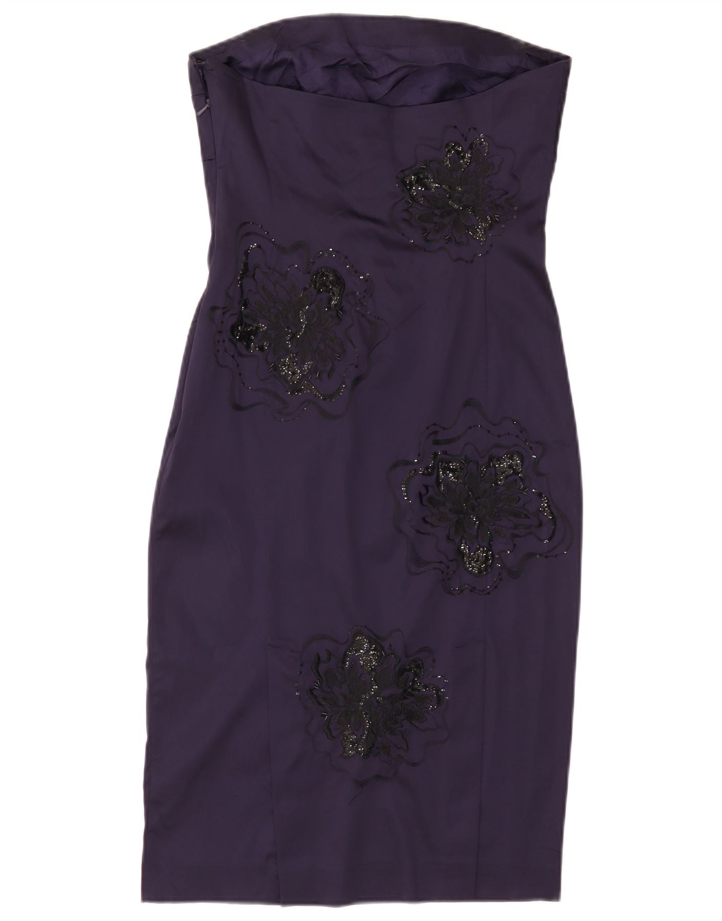 JANE NORMAN Vestido ajustado sin tirantes para mujer UK 40 Medio Púrpura Floral