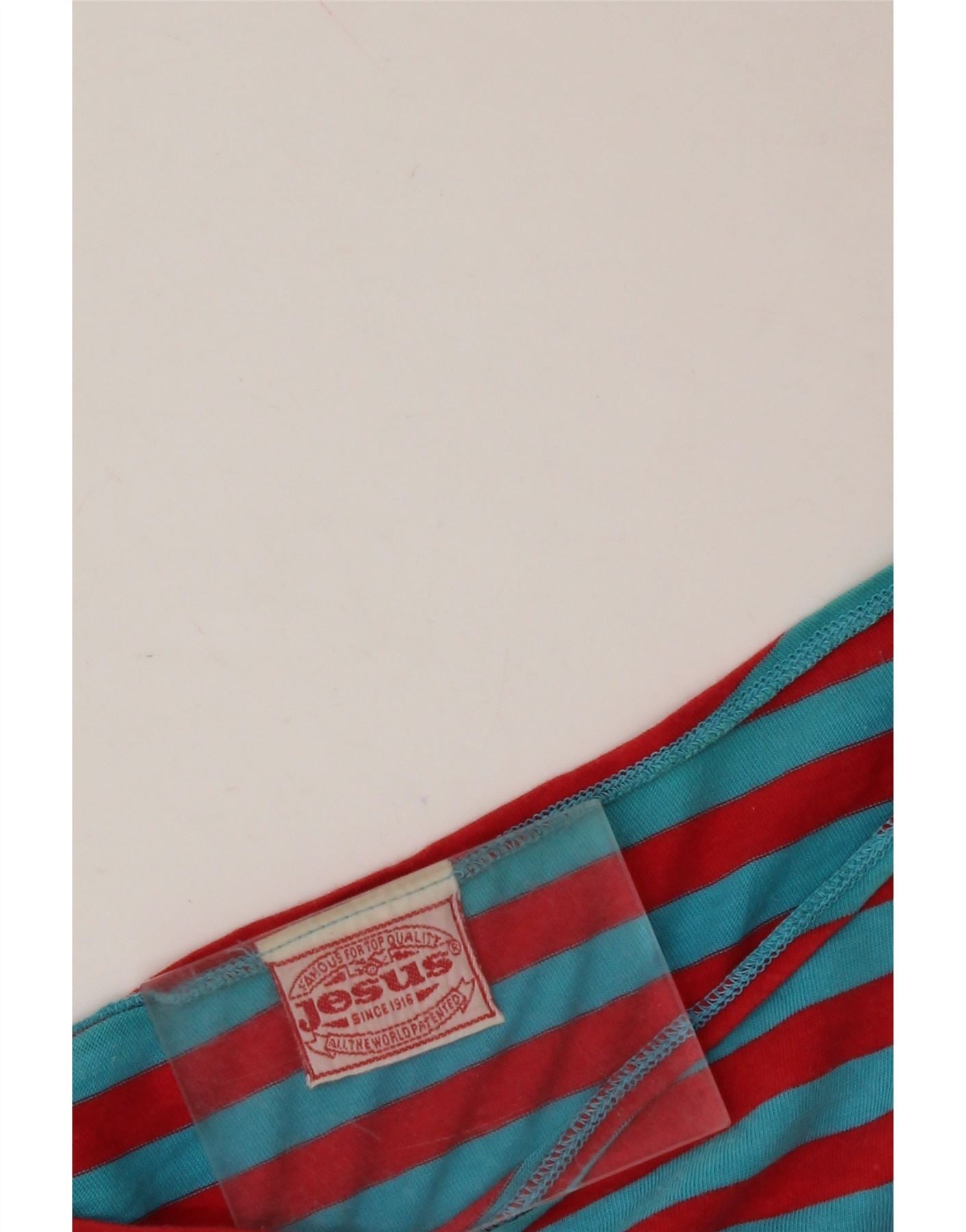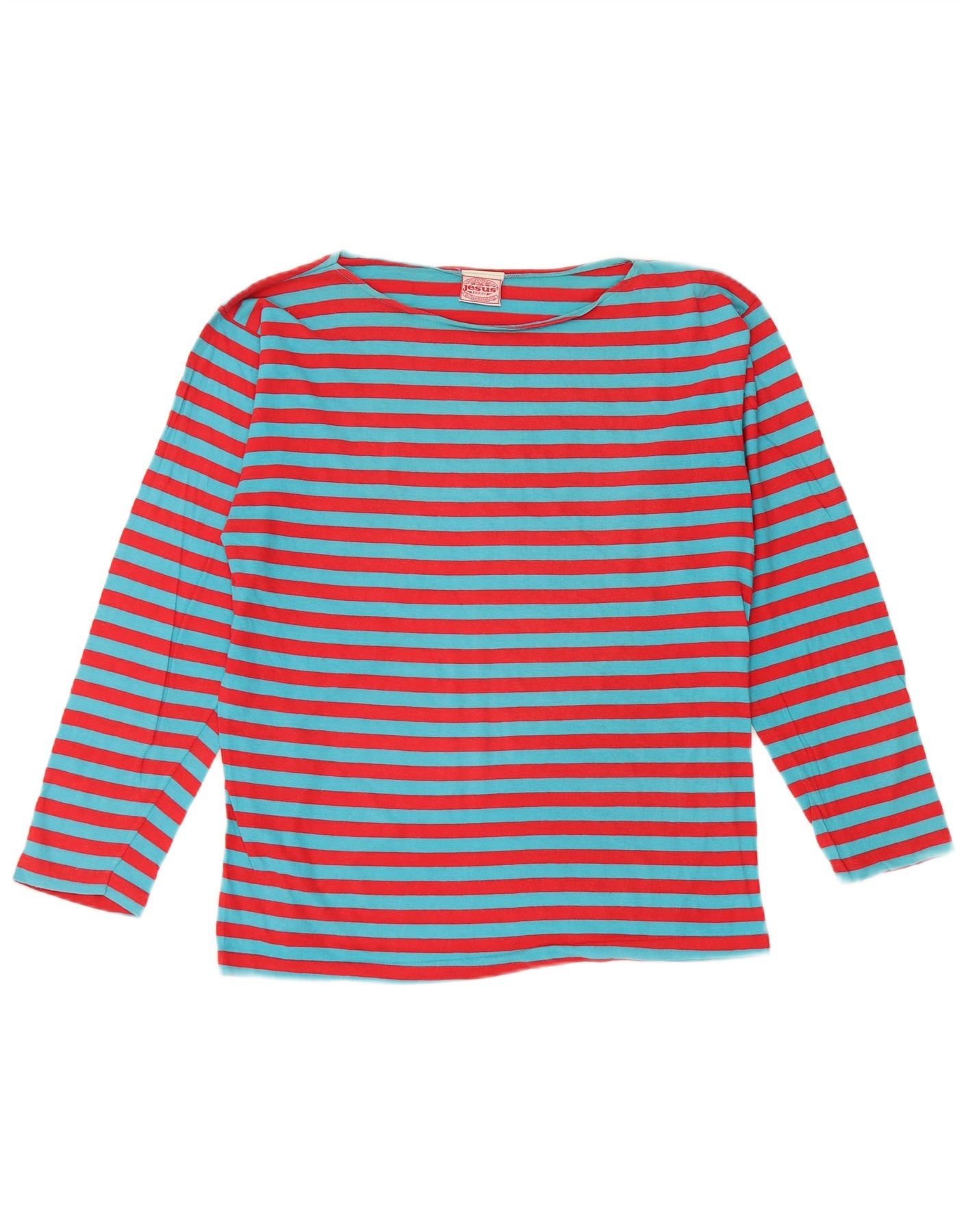 JESUS Top de mujer de manga larga UK 46 grande de algodón a rayas rojas