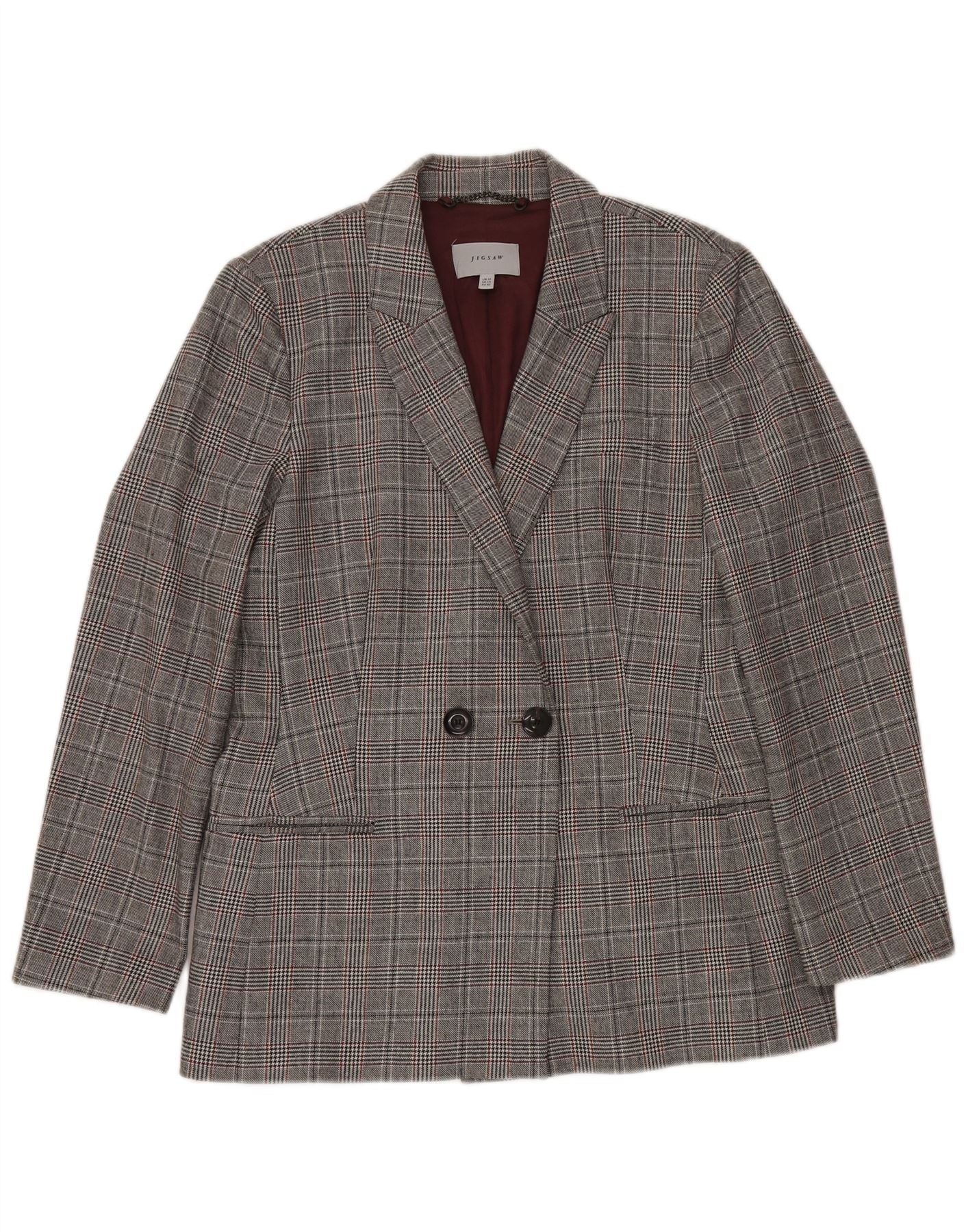 JIGSAW Chaqueta tipo blazer con doble botonadura para mujer UK 40 Large Grey Houndstooth