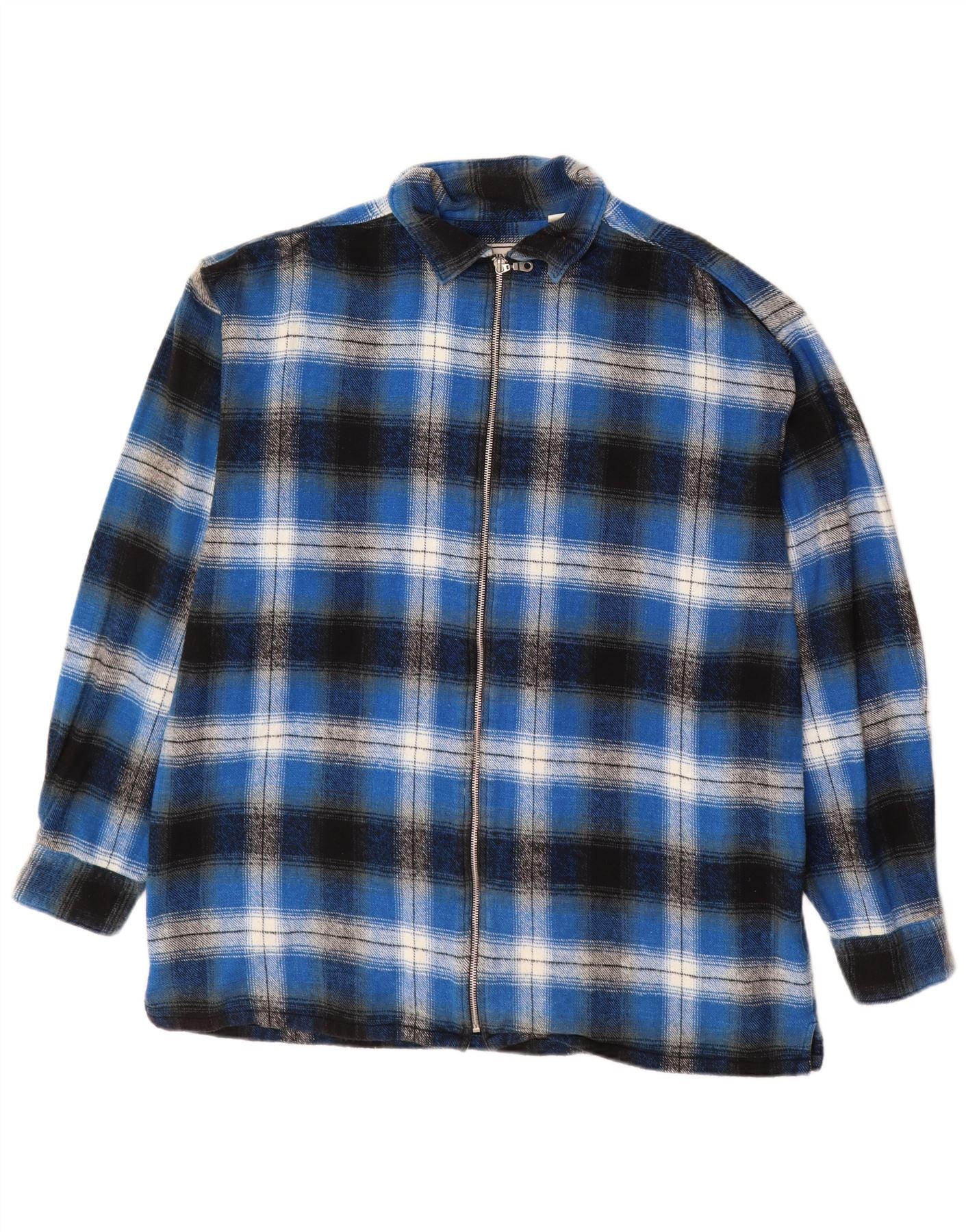 John Baner Camisa de franela para hombre Talla 15 1/2 Algodón a cuadros azul mediano