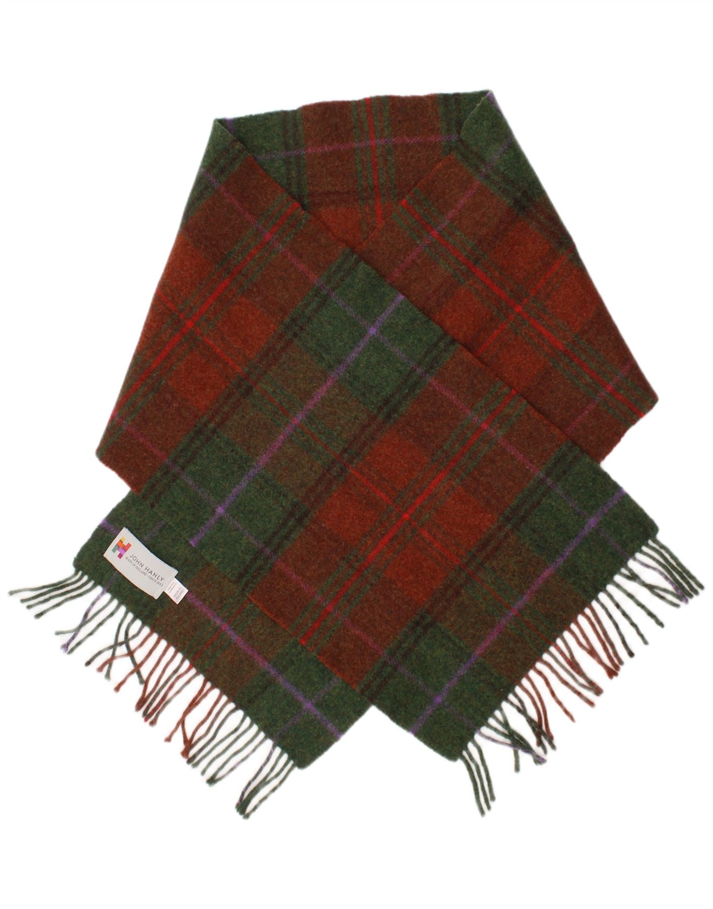 JOHN HANLY Mens Rectangle Scarf One Size Multicoloured Check Lambswool