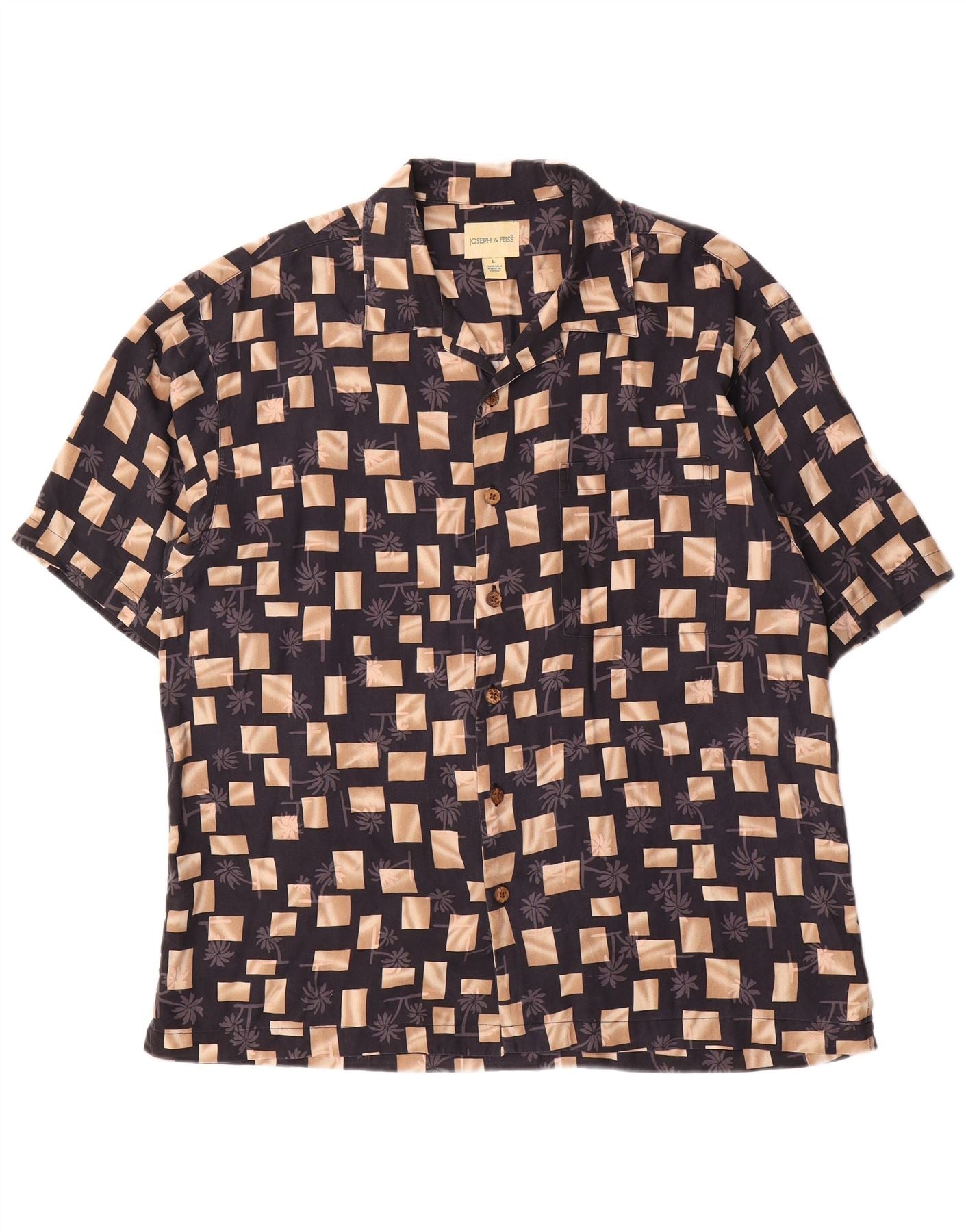 Joseph & Feiss Camisa De Manga Corta Para Hombre Seda Geométrica Negra Grande