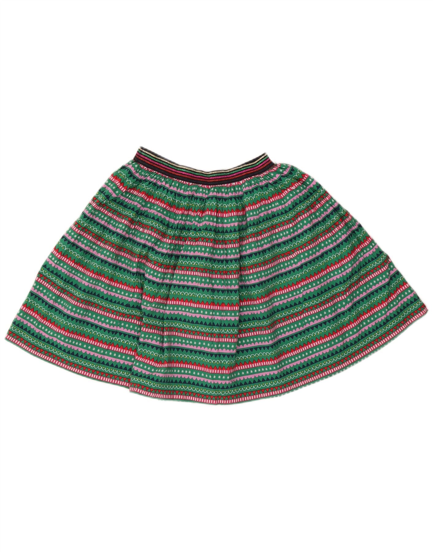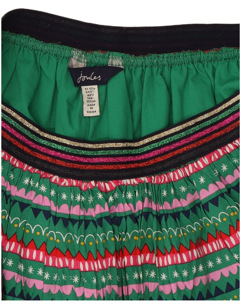 JOULES Girls Abstract Pattern A-Line Skirt 11-12 Years W24 Green Cotton