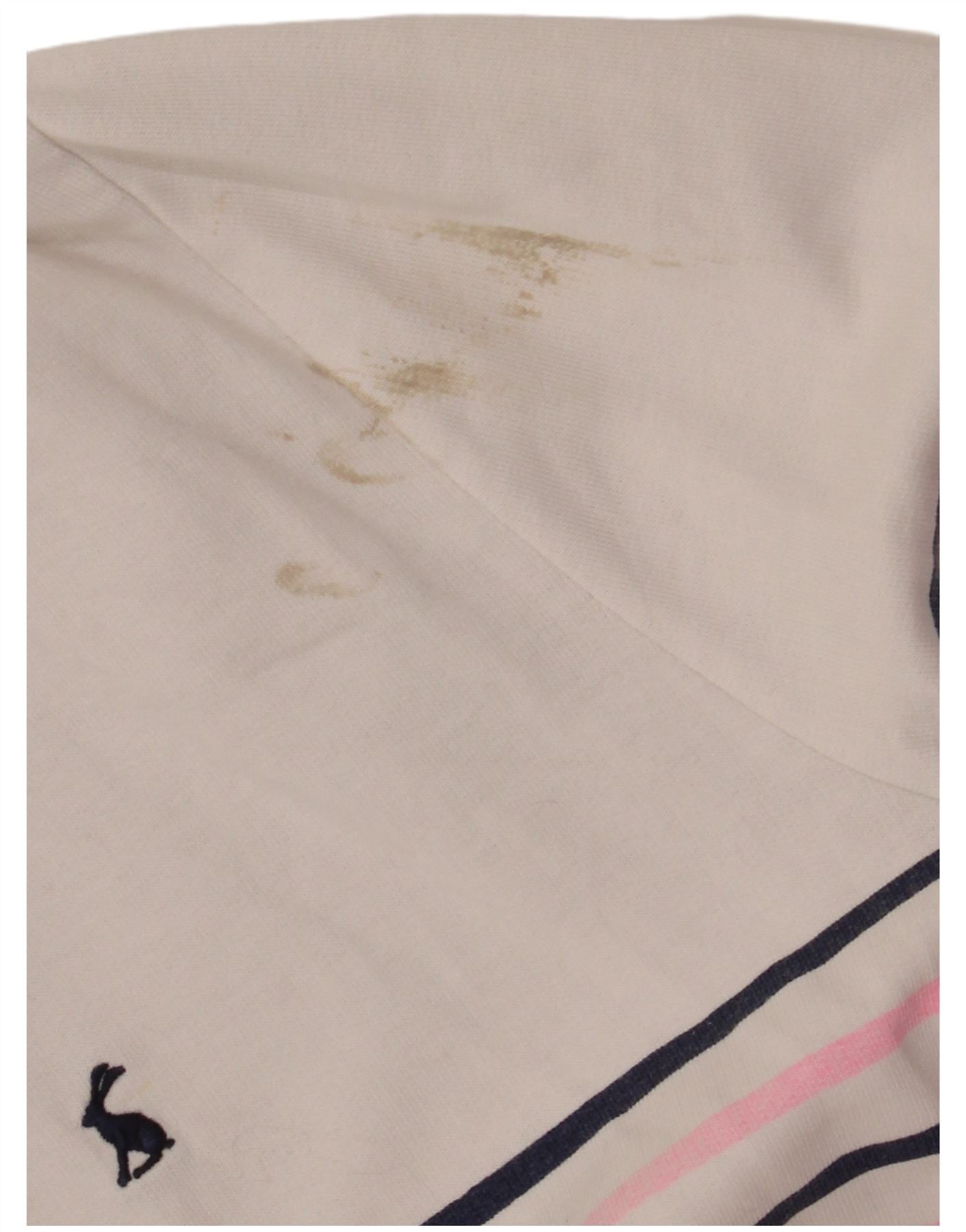 JOULES Sudadera con cuello y botones para mujer UK 20 2XL Blanco a rayas