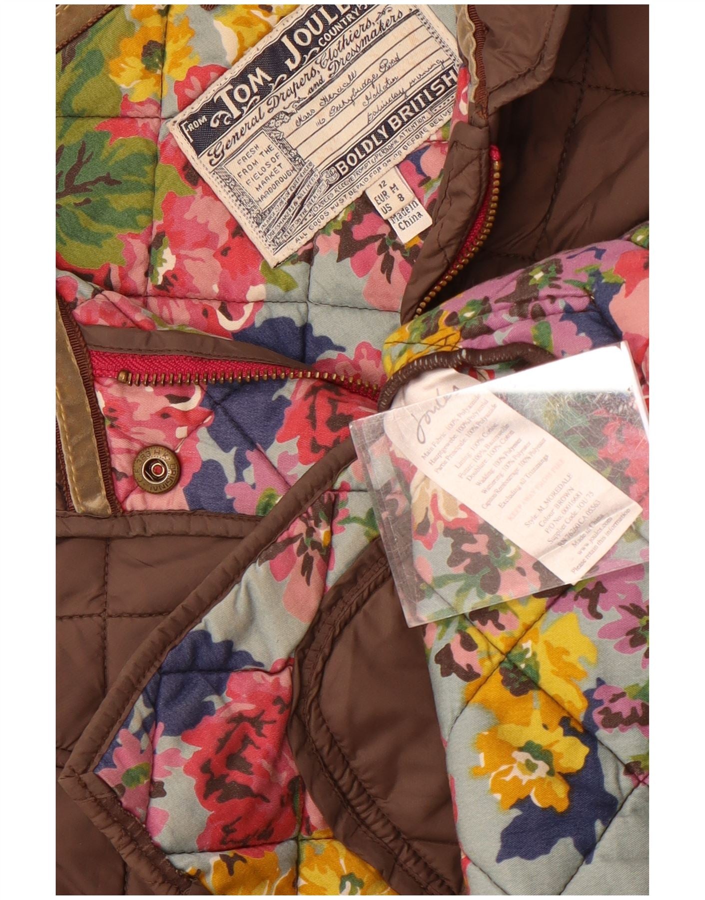 - Descripción de IA: Esta chaqueta acolchada para mujer de Joules está confeccionada en una rica mezcla de tejidos de color marrón con un acabado acolchado clásico. Presenta escote con cuello y cierre completo con botones. Las mangas largas brindan una amplia cobertura. El corte regular garantiza una gran comodidad. Los bolsillos de parche de pana añaden un contraste táctil y un detalle práctico. La chaqueta está completamente forrada para mayor calidez y comodidad.