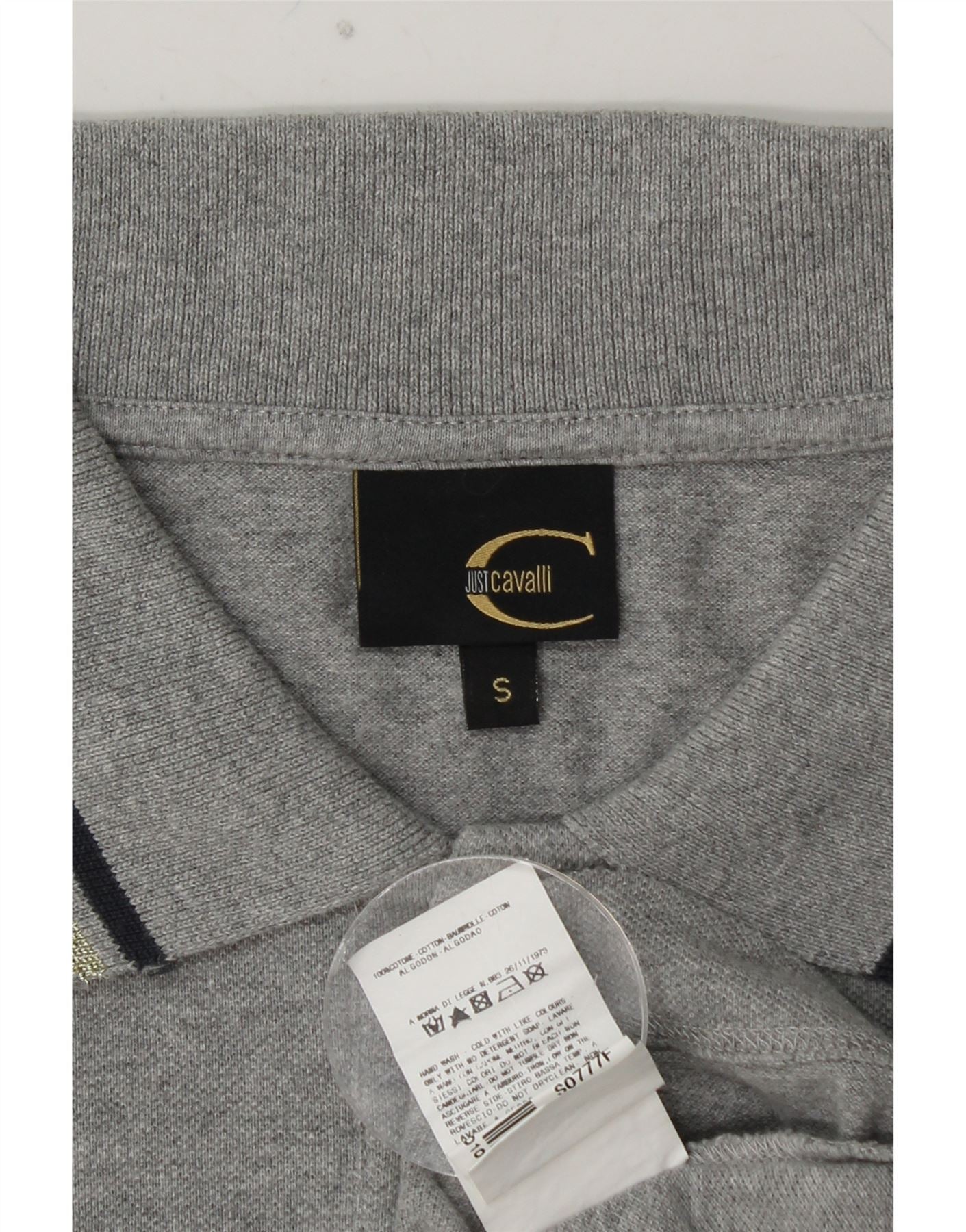 JUST CAVALLI Polo gráfico de manga larga para mujer UK 10 Small Gris Algodón