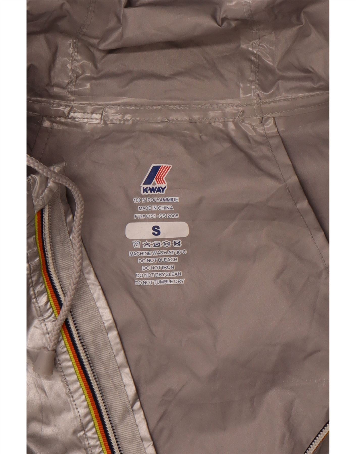 K-WAY Chaqueta impermeable holgada con capucha para mujer, talla 40, talla pequeña, poliamida plateada