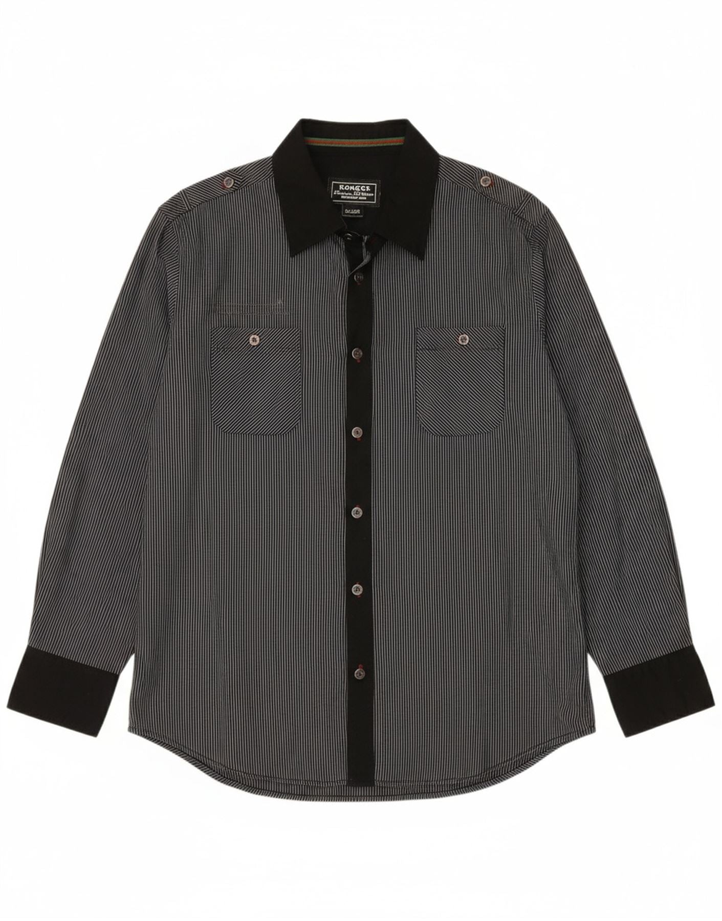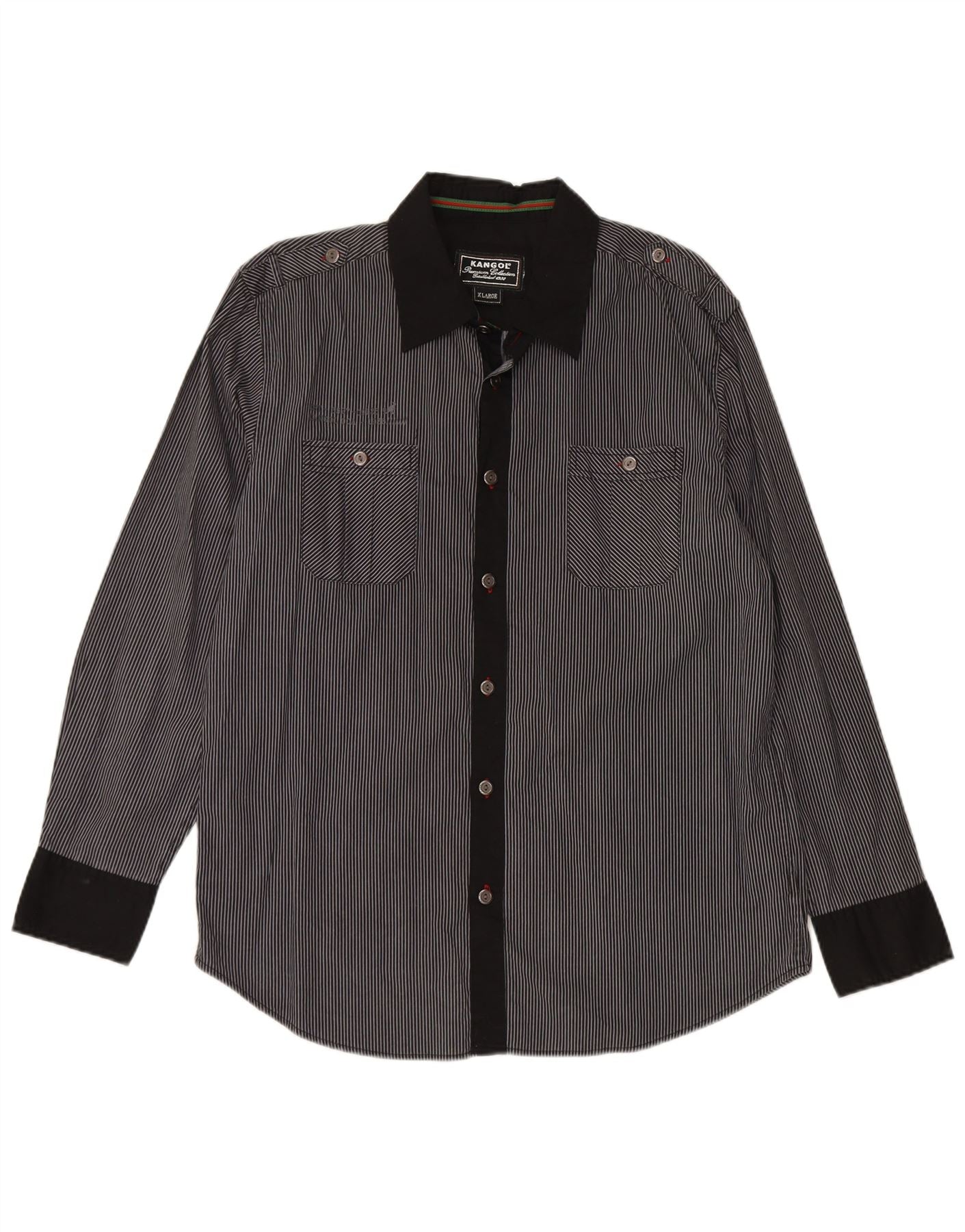 - AI Description: This Kangol mens shirt is crafted from a woven fabric, featuring a classic striped pattern in black. The collared neckline and button-up front offer a smart, timeless appeal. Long sleeves and a regular fit ensure comfortable wear. Practical pockets add utility, while tonal buttons complete the design with subtle detail. This shirt provides a versatile, refined look.