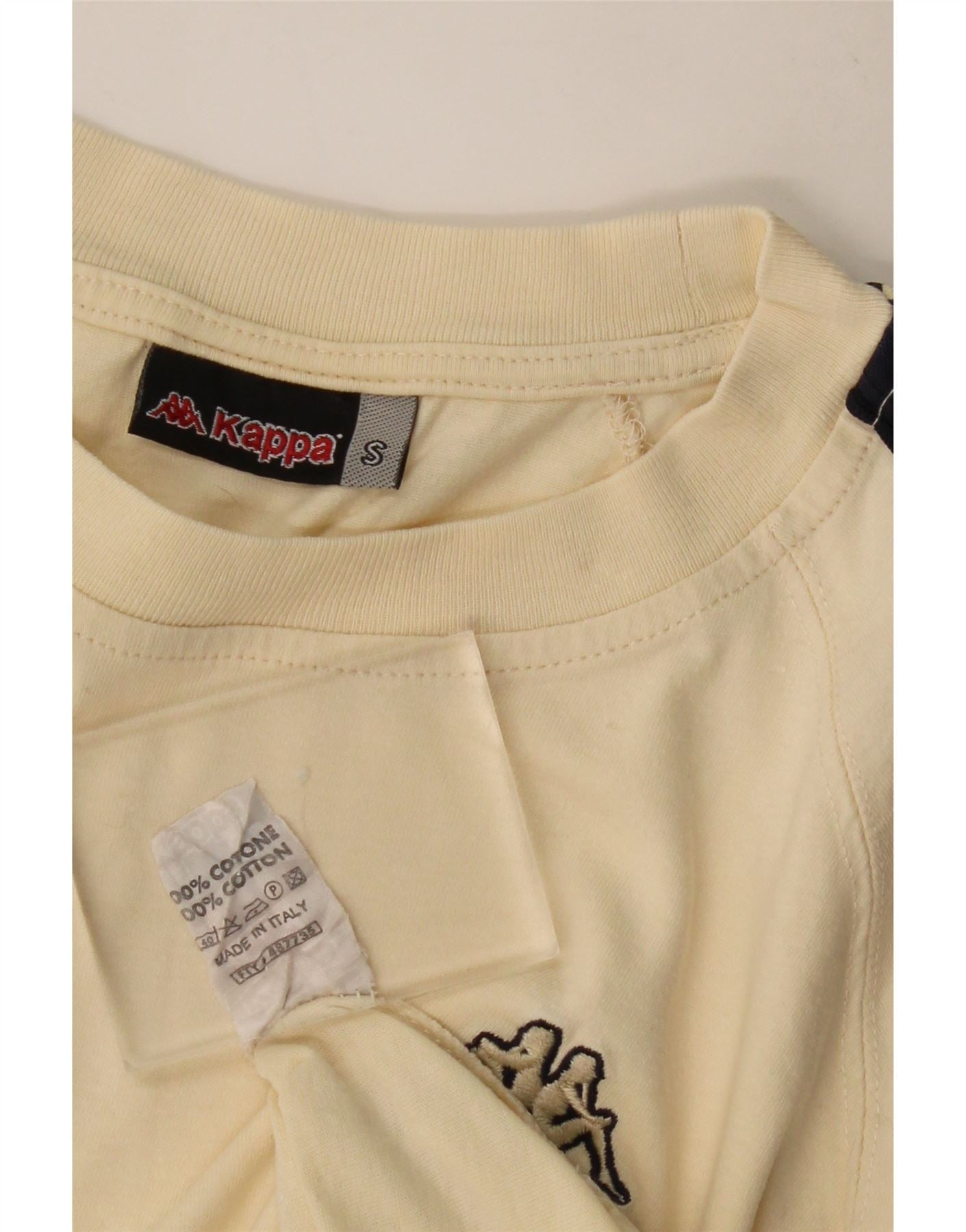 KAPPA Hombre Camiseta Gráfica Top Small Beige Colorblock Algodón