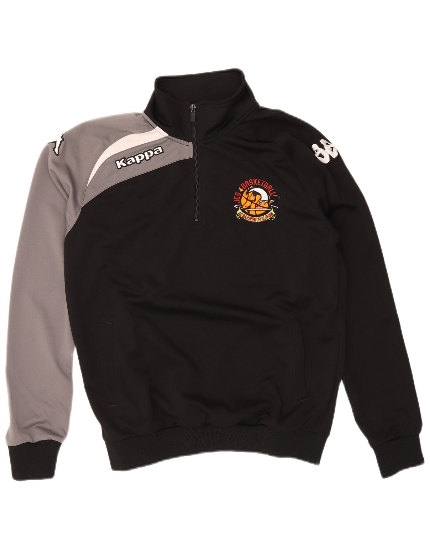 KAPPA Mens Graphic Zip Neck Sudadera Jumper Small Black Colorblock