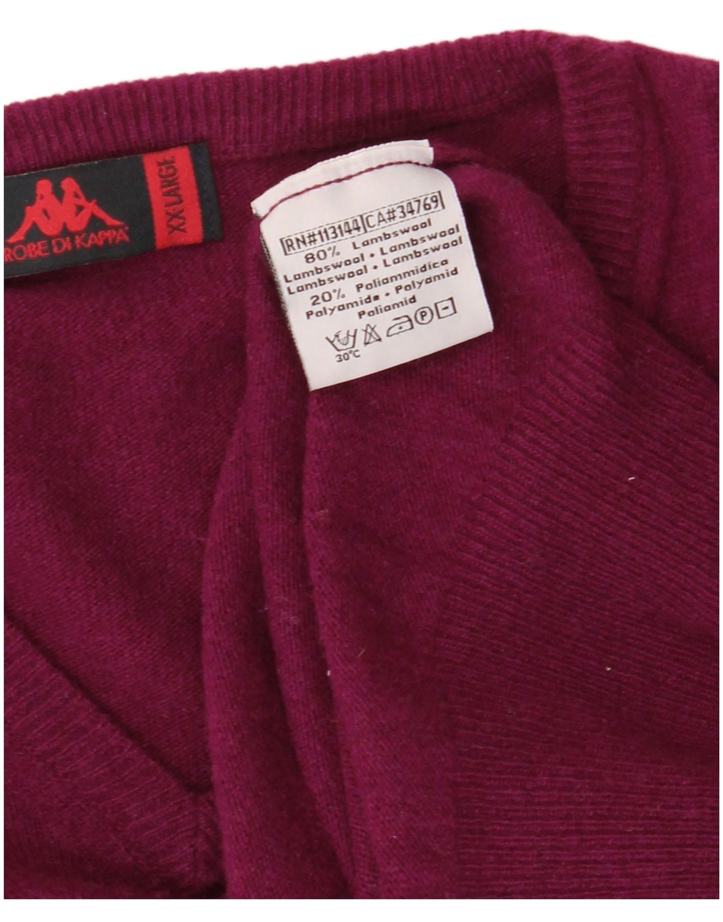 KAPPA Jersey con cuello en V para hombre, talla 2XL, lana de cordero morada