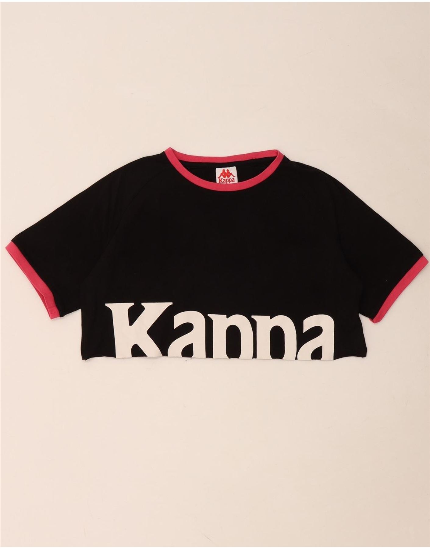 KAPPA Camiseta corta con gráfico extragrande para mujer UK 10 Small Black Cotton
