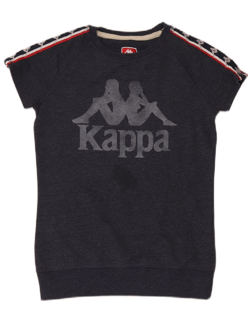 KAPPA Camiseta gráfica para mujer Top UK 10 Small Algodón moteado azul marino