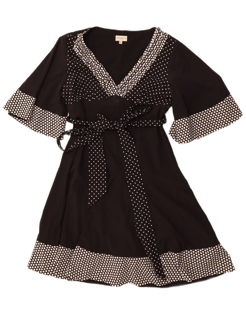KAREN MILLEN Womens 3/4 Sleeve A-Line Dress UK 14 Large Black Polka Dot