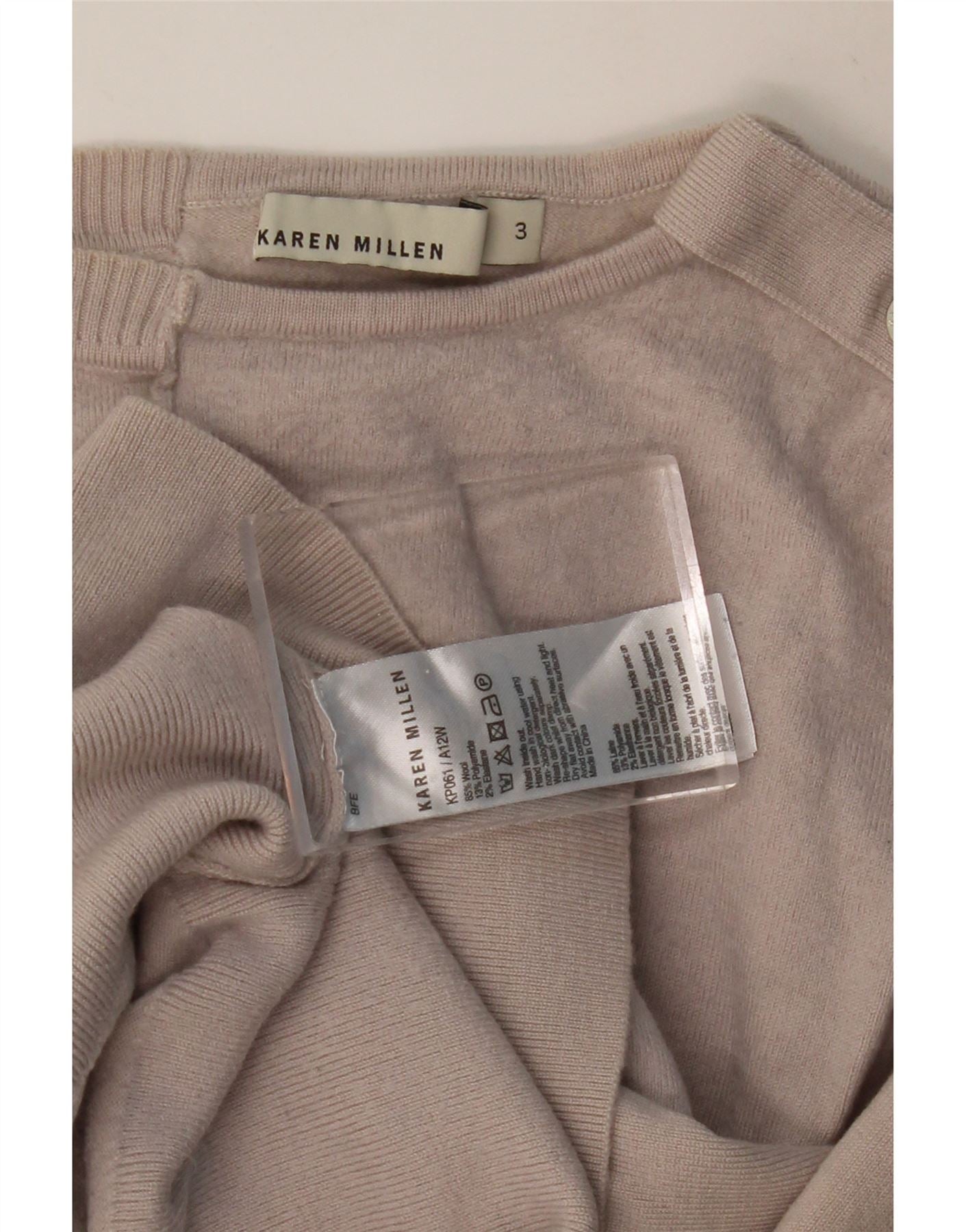 KAREN MILLEN Suéter corto con cuello barco y manga 3/4 para mujer UK 0 2XS Gris