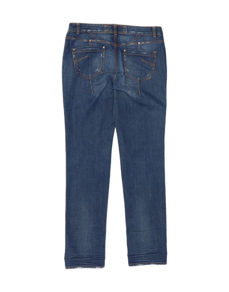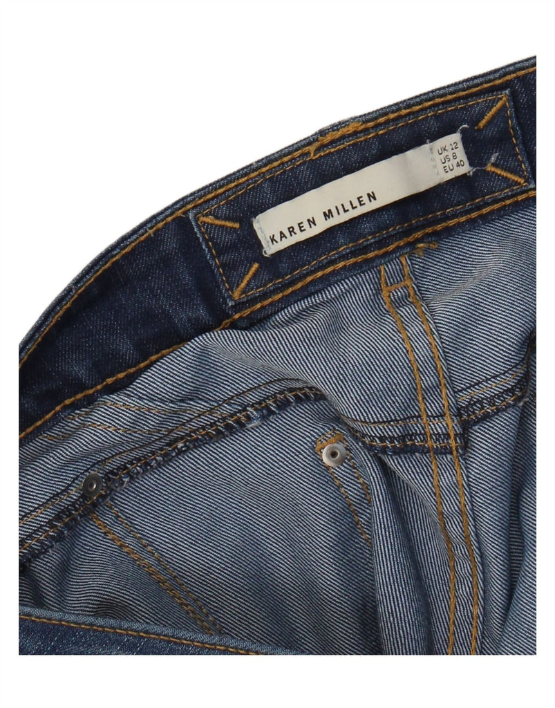 KAREN MILLEN Vaqueros rectos desgastados para mujer UK 12 Medium W32 L32 Azul