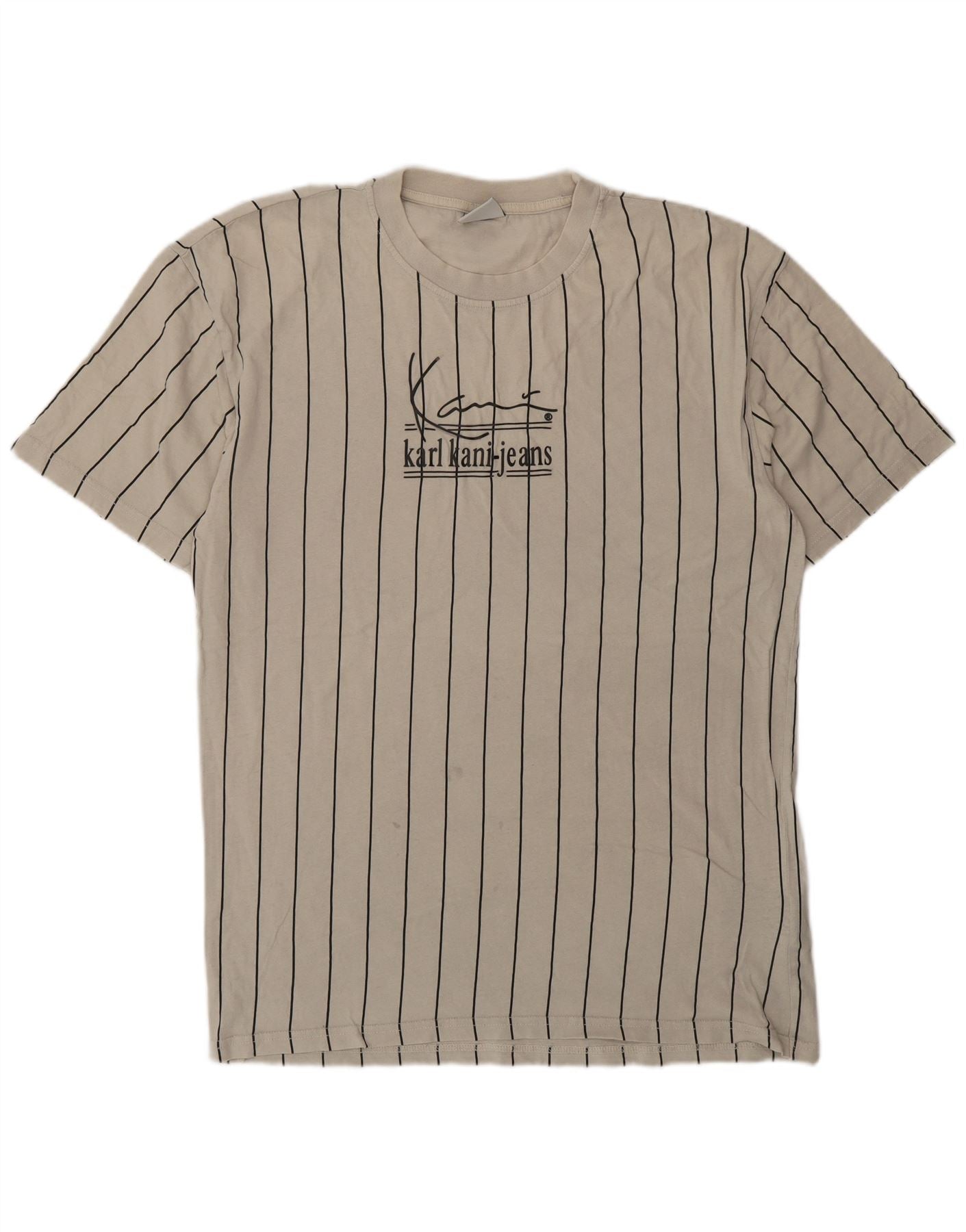KARL KANI Camiseta gráfica para hombre Top pequeño de algodón a rayas beige