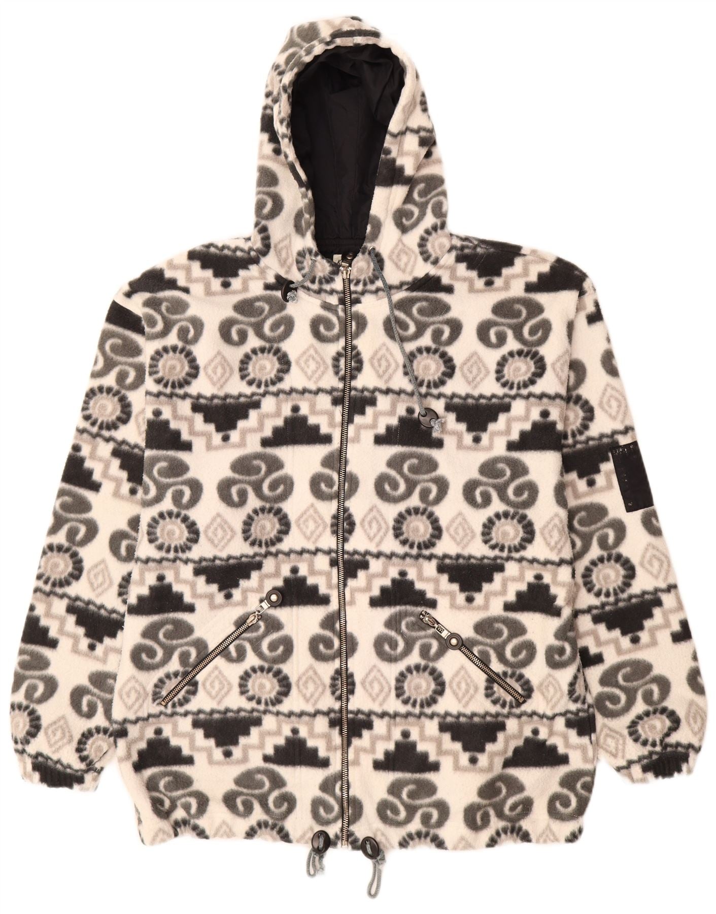 KNOCK OUT Chaqueta polar con capucha para mujer Reino Unido 14 Mediano Blanco Geométrico