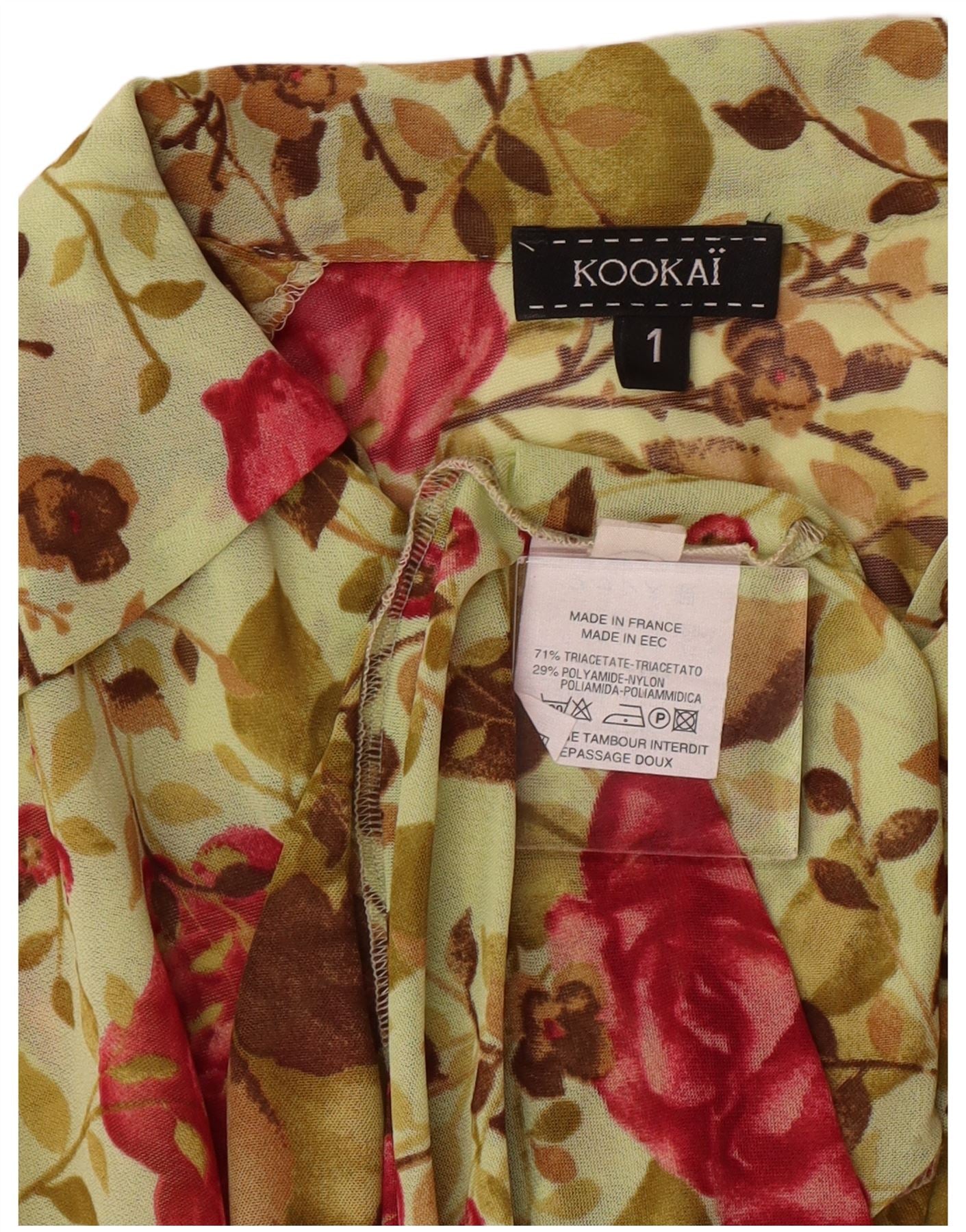 Kookai Vestido camisero de manga larga para mujer, talla 1, pequeño, verde, floral, bohemio