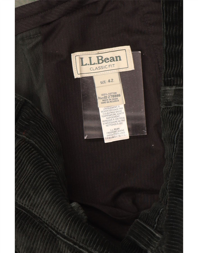 L.L.BEAN Mens Classic Fit Straight Corduroy Trousers W42 L30 Green Cotton