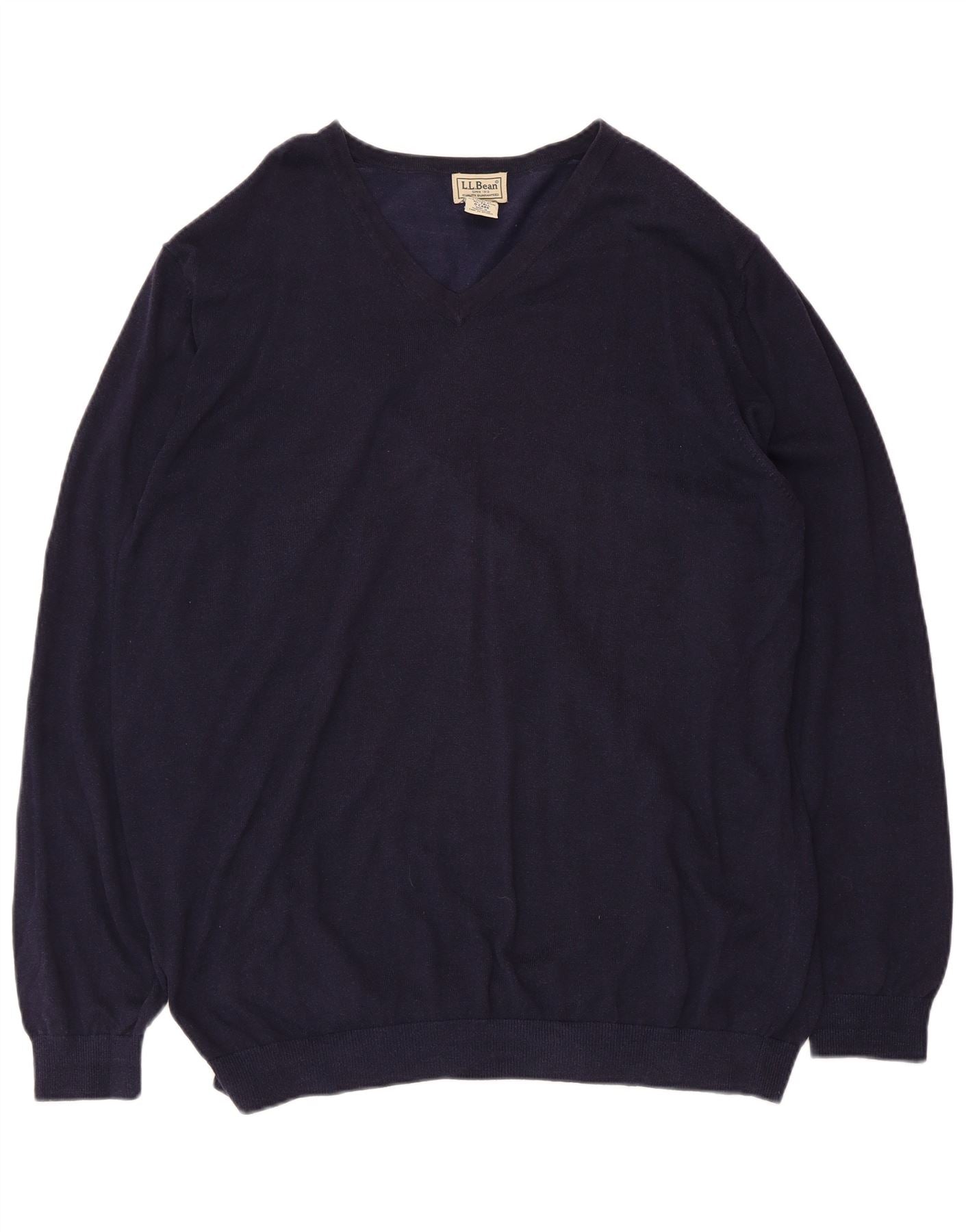L.L.Bean Suéter alto con cuello en V para hombre XL Algodón azul marino