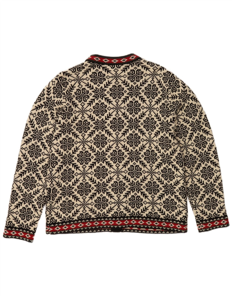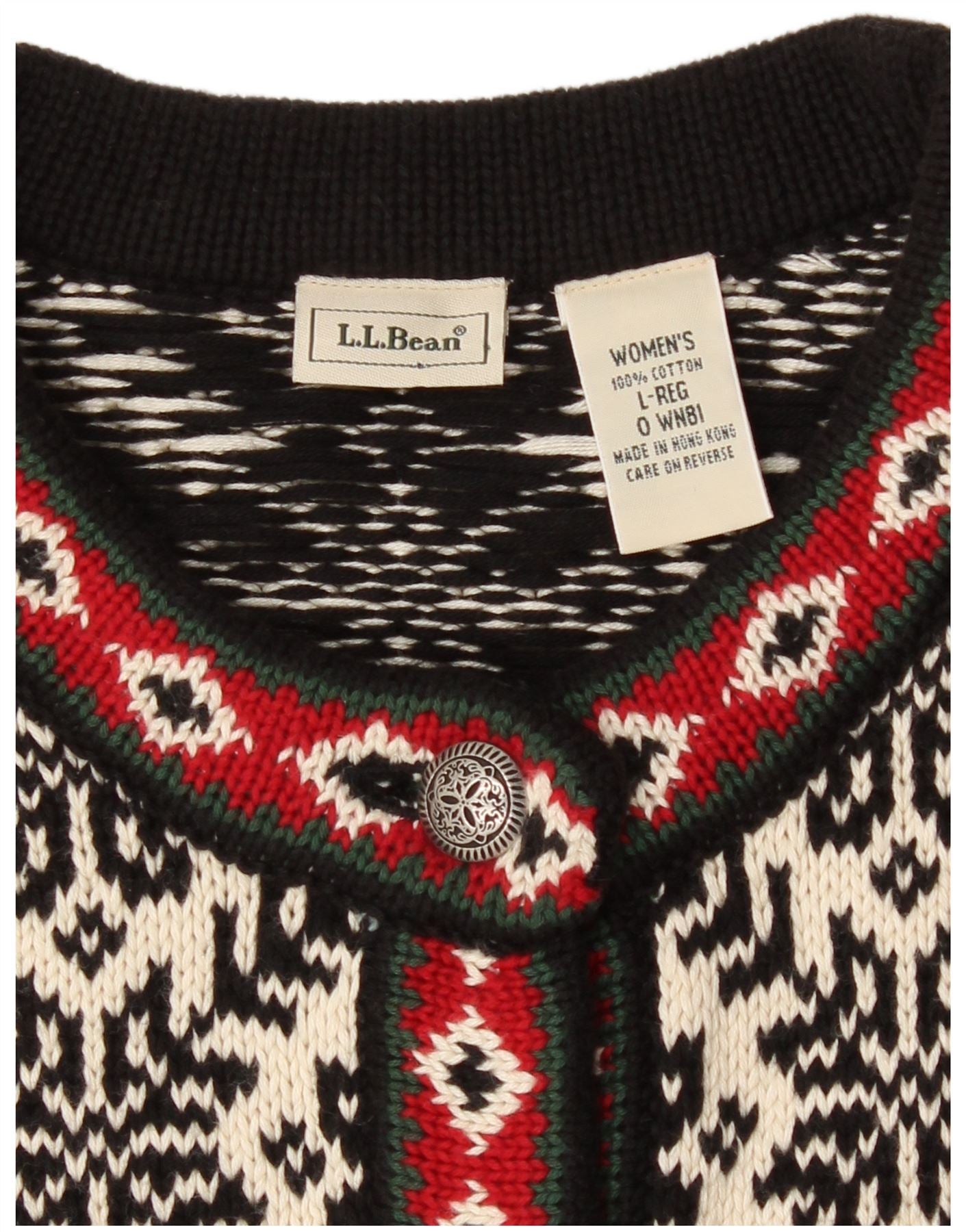 L.L.BEAN Womens Cardigan Sweater UK 16 Large Black Fair Isle Cotton