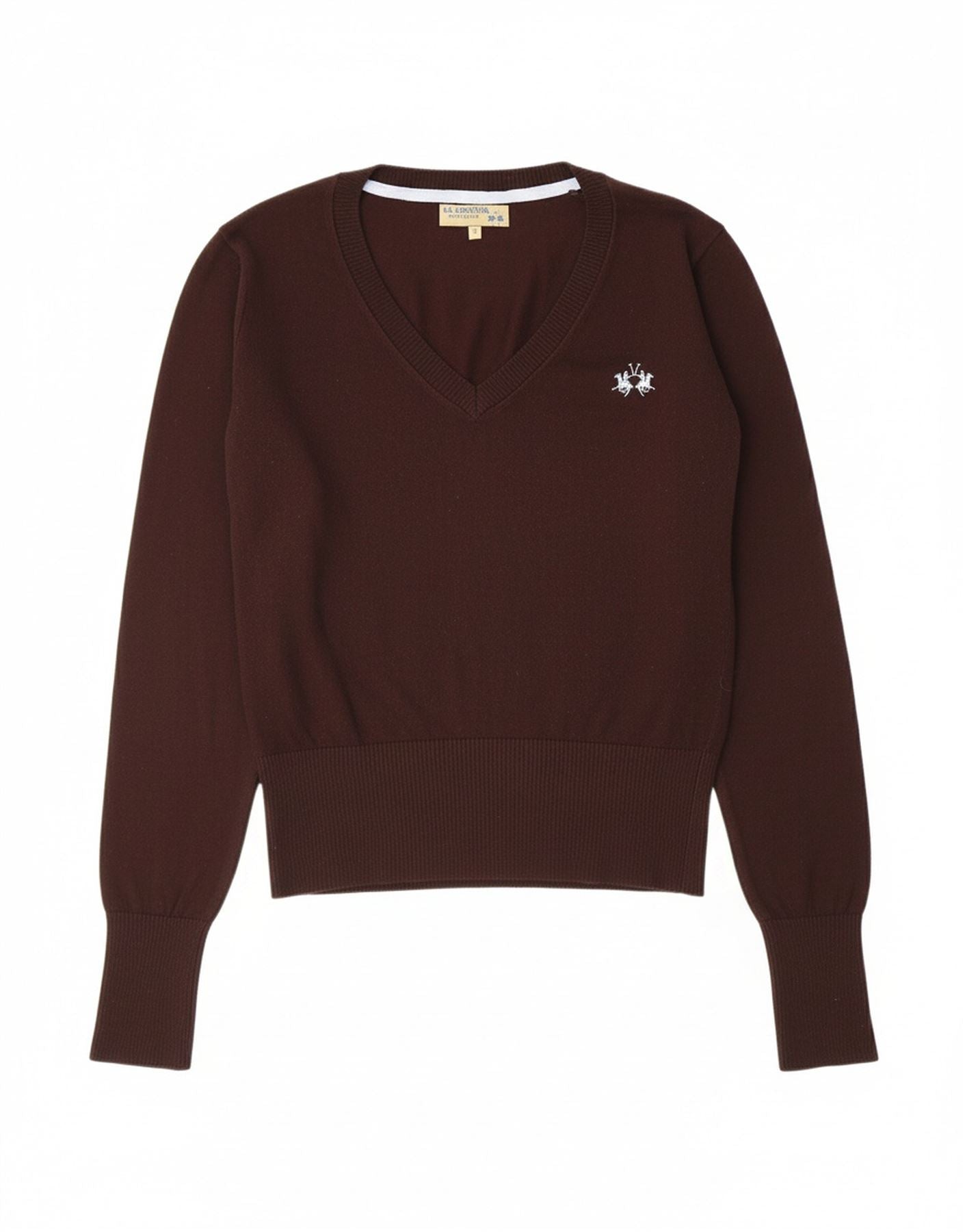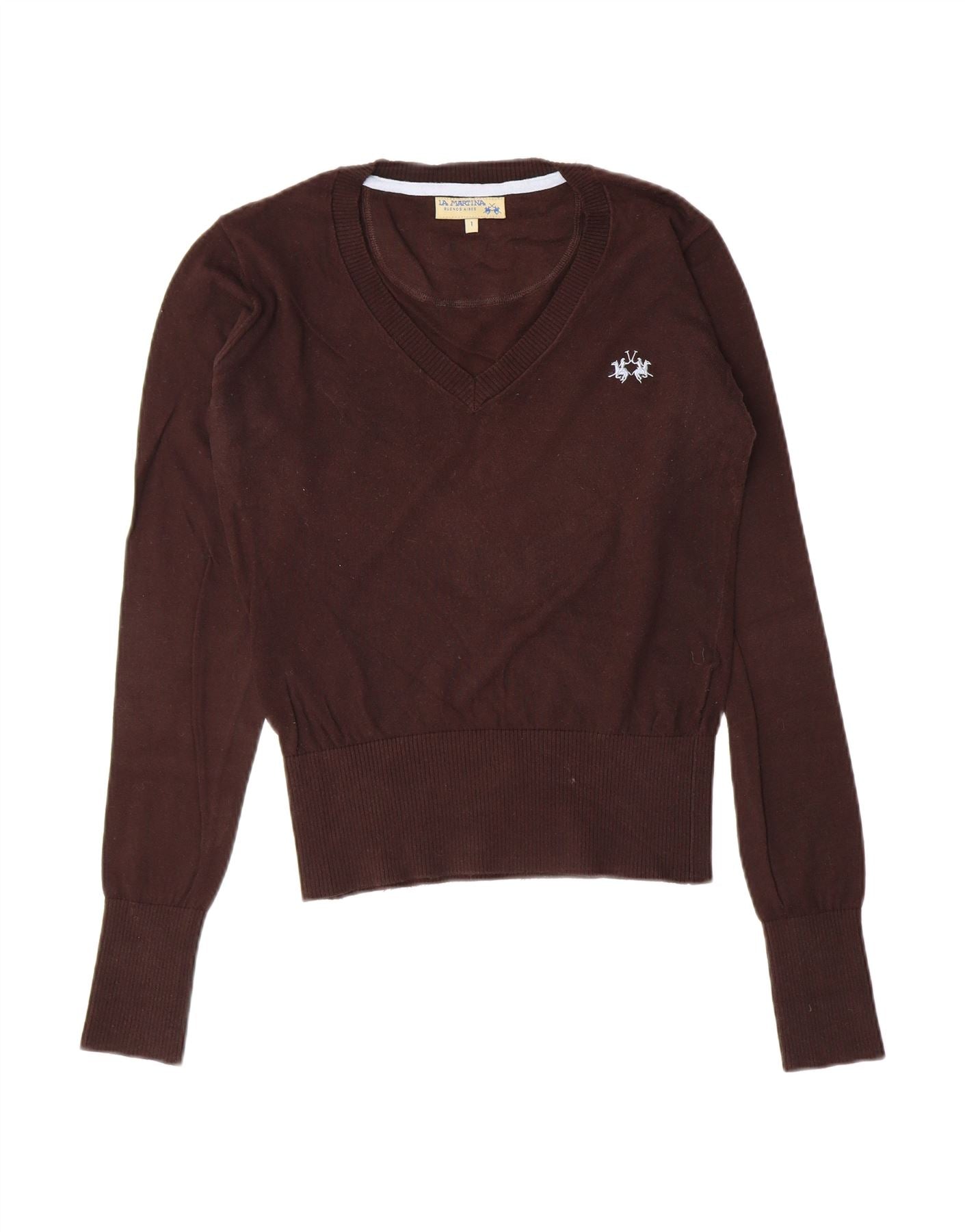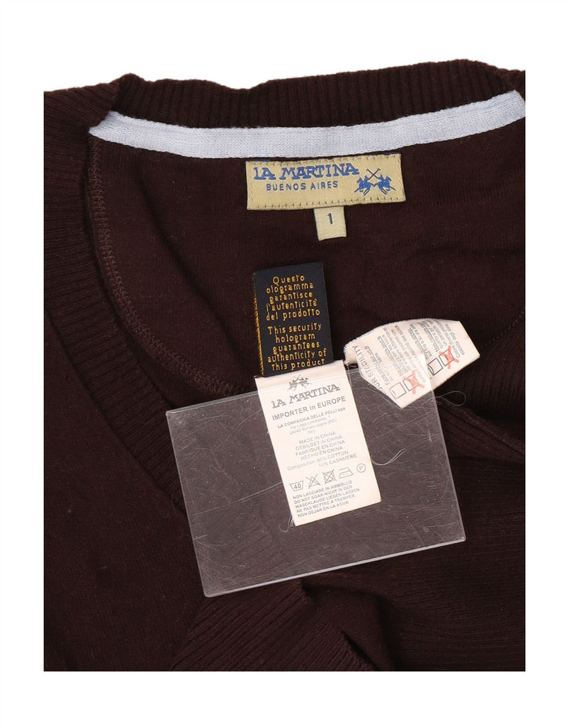 LA MARTINA Womens Loose Fit V-Neck Jumper Sweater Size 1 XS Brown Classic