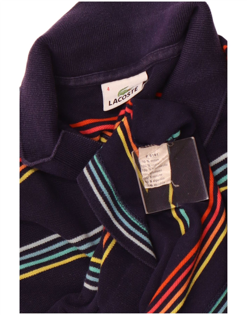 LACOSTE Polo para hombre talla 4 mediano algodón a rayas azul marino