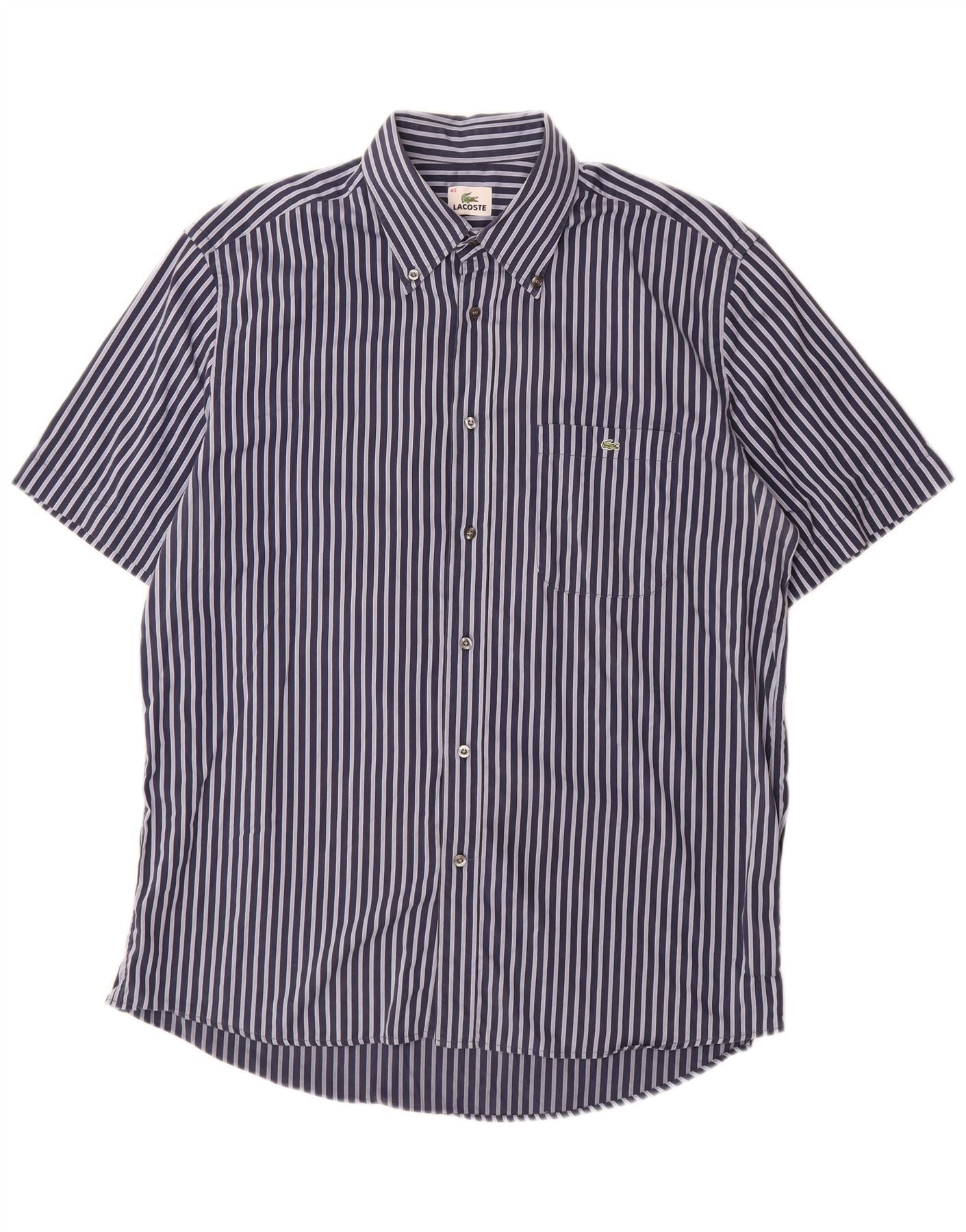 Camisa LACOSTE de manga corta para hombre Talla 43 XL Algodón azul marino a rayas