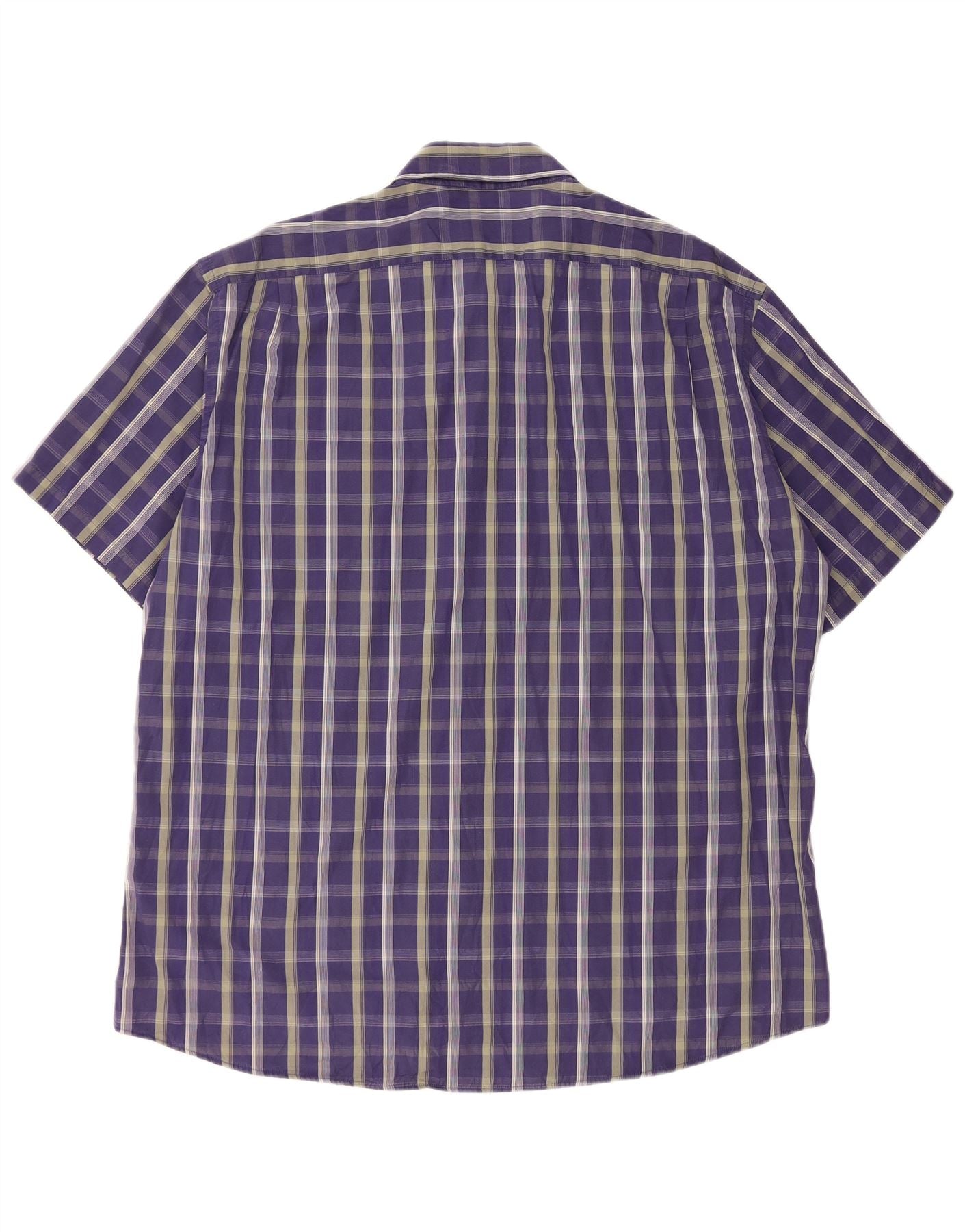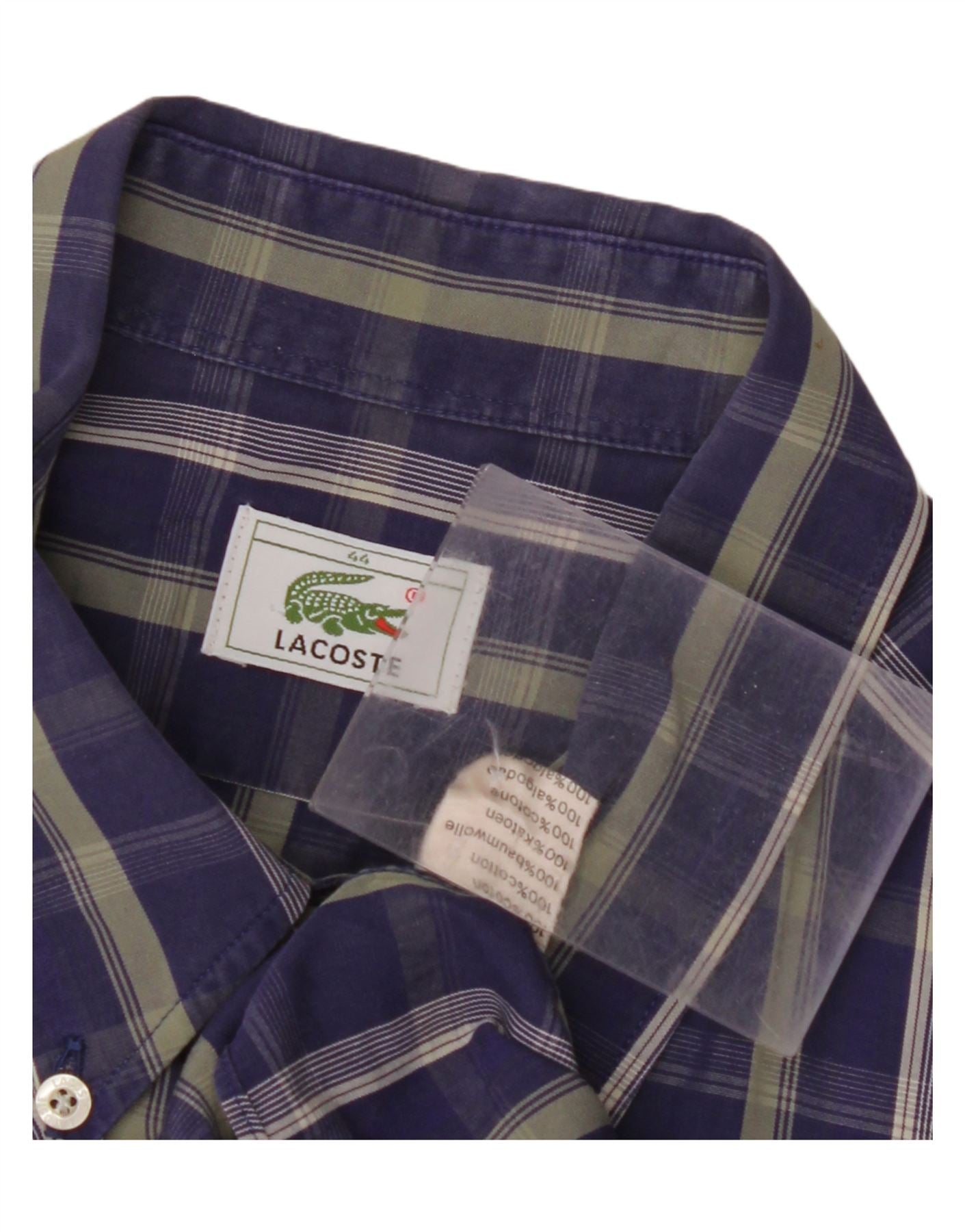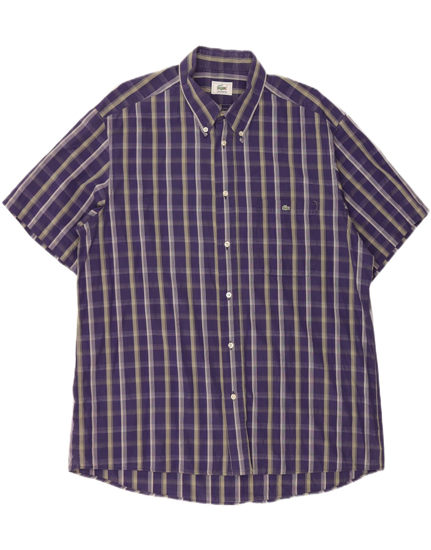 LACOSTE Camisa de manga corta para hombre Talla 44 XL Algodón a cuadros morado