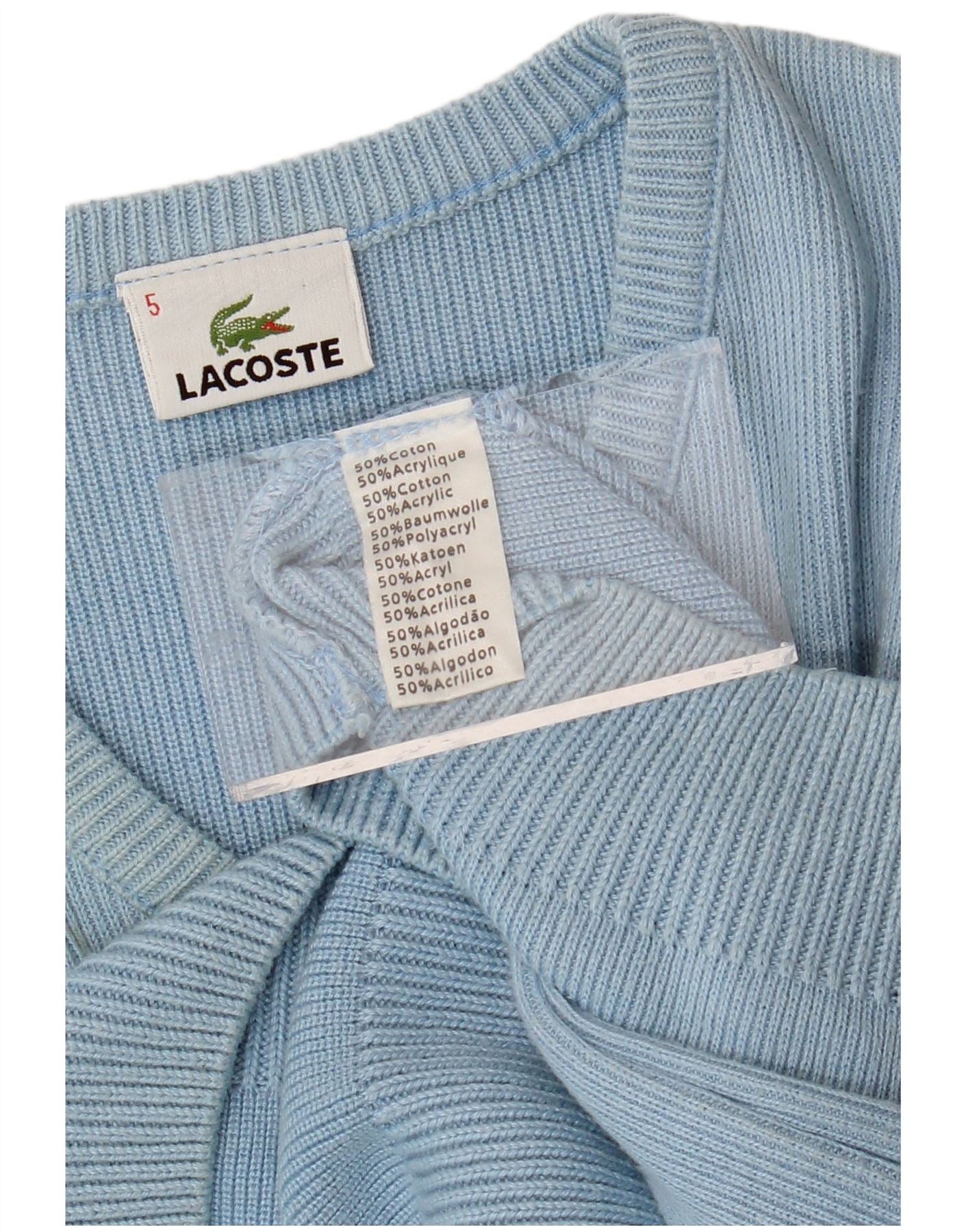 LACOSTE Jersey con cuello en V para hombre talla 5 grande algodón azul