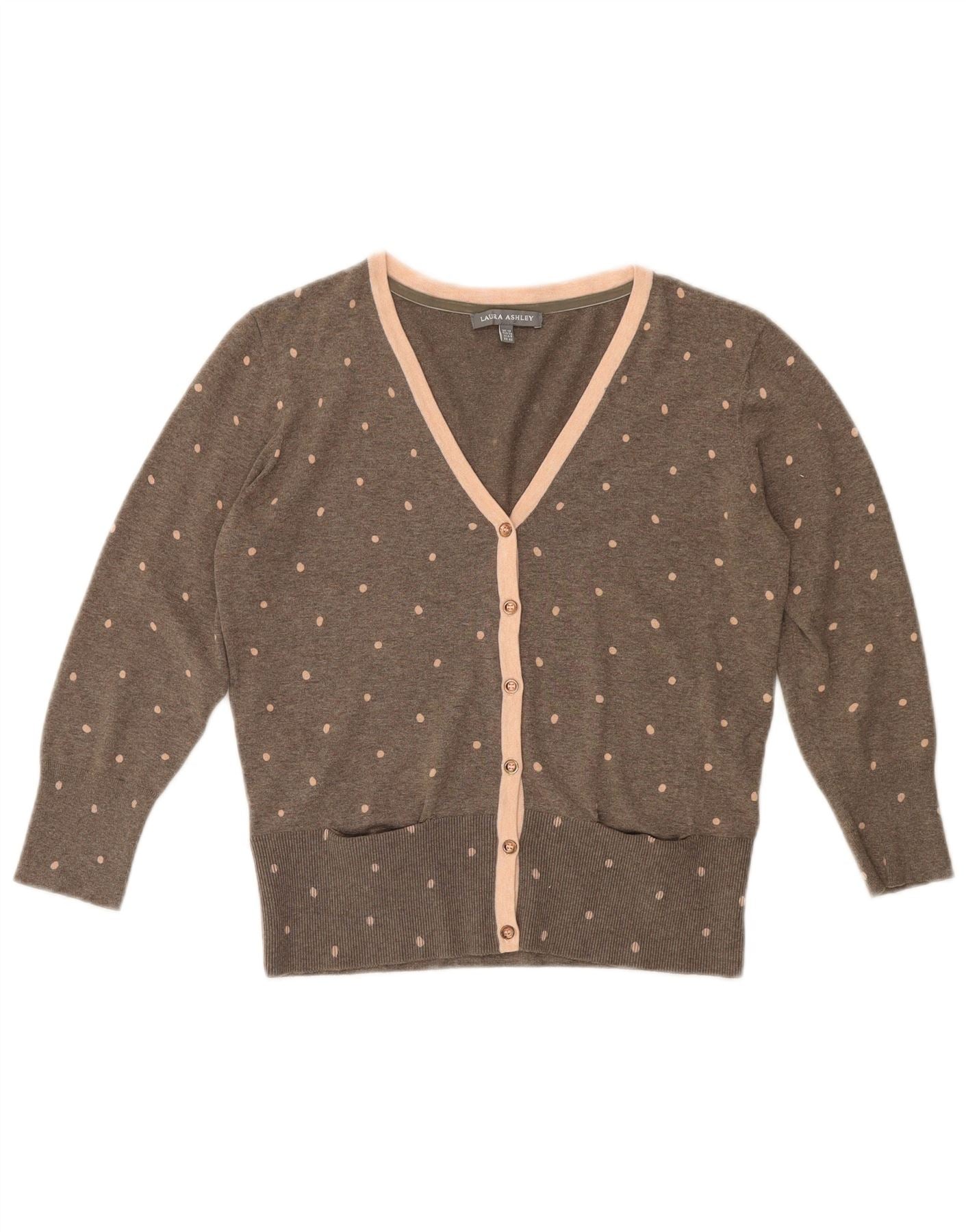 LAURA ASHLEY Womens Crop Cardigan Sweater UK 12 Medium Grey Spotted