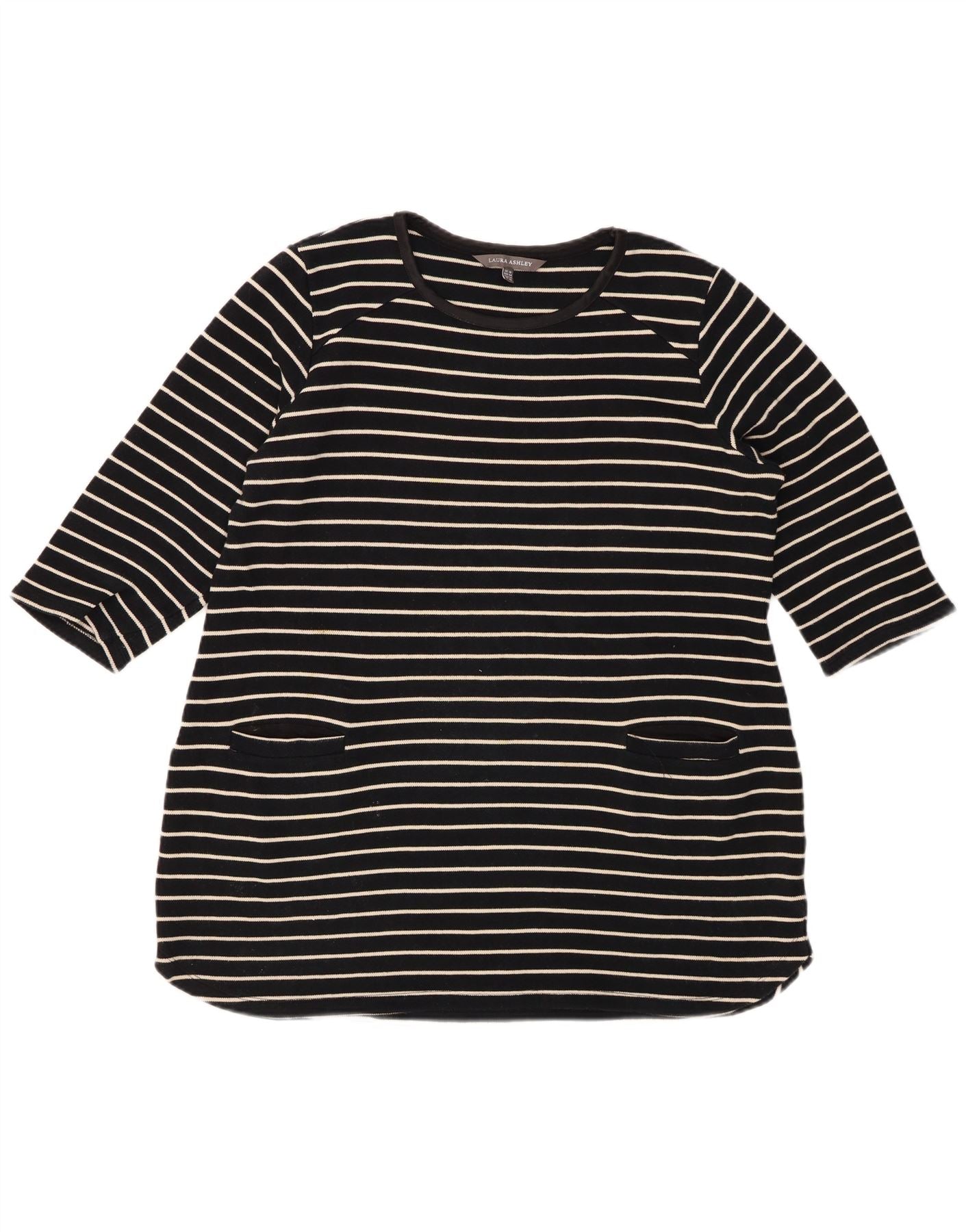 LAURA ASHLEY Top para mujer manga 3/4 UK 40 XL Algodón a rayas negro