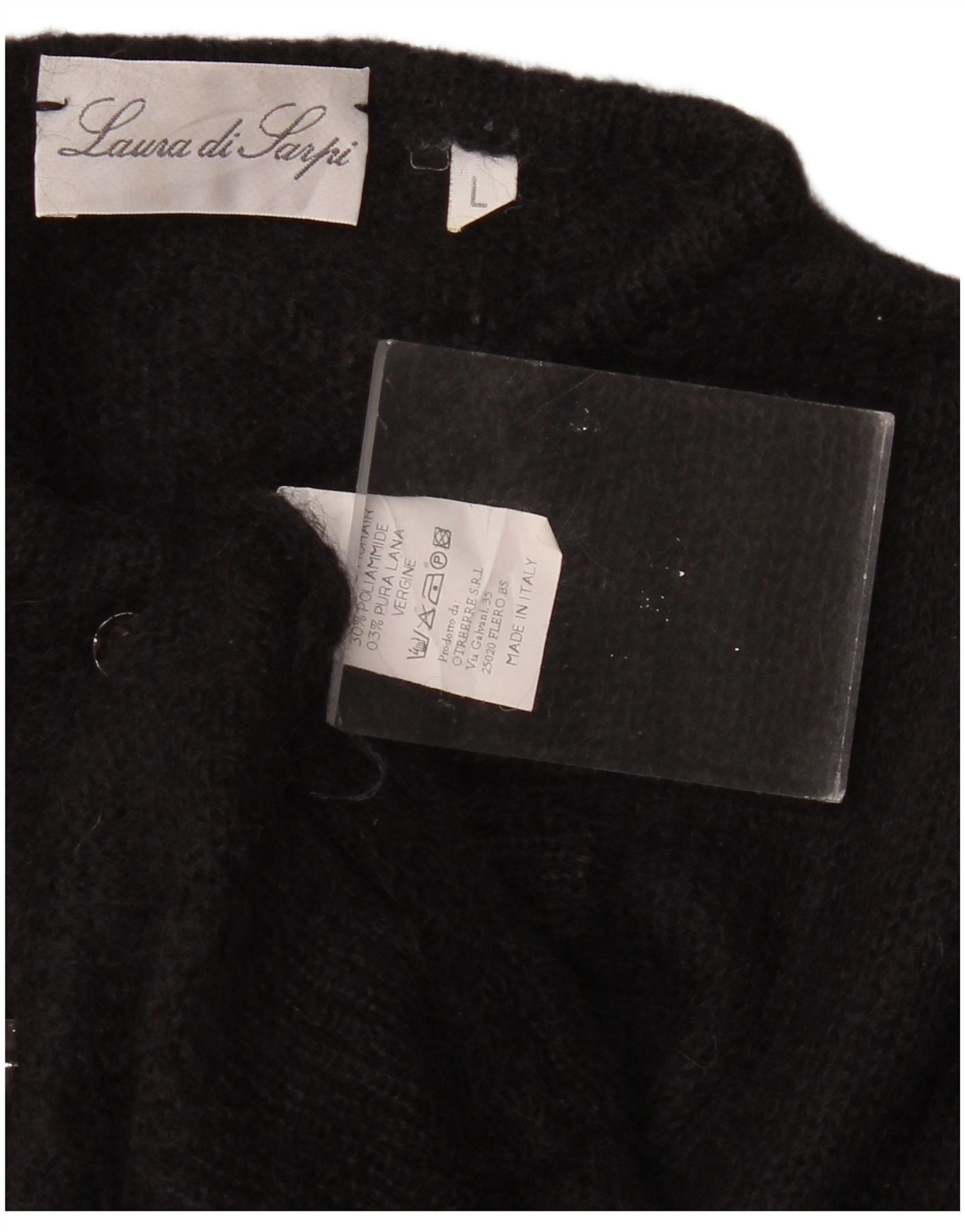 LAURA DI SARPI Suéter tipo cárdigan para mujer Reino Unido 46 Grande Mohair negro