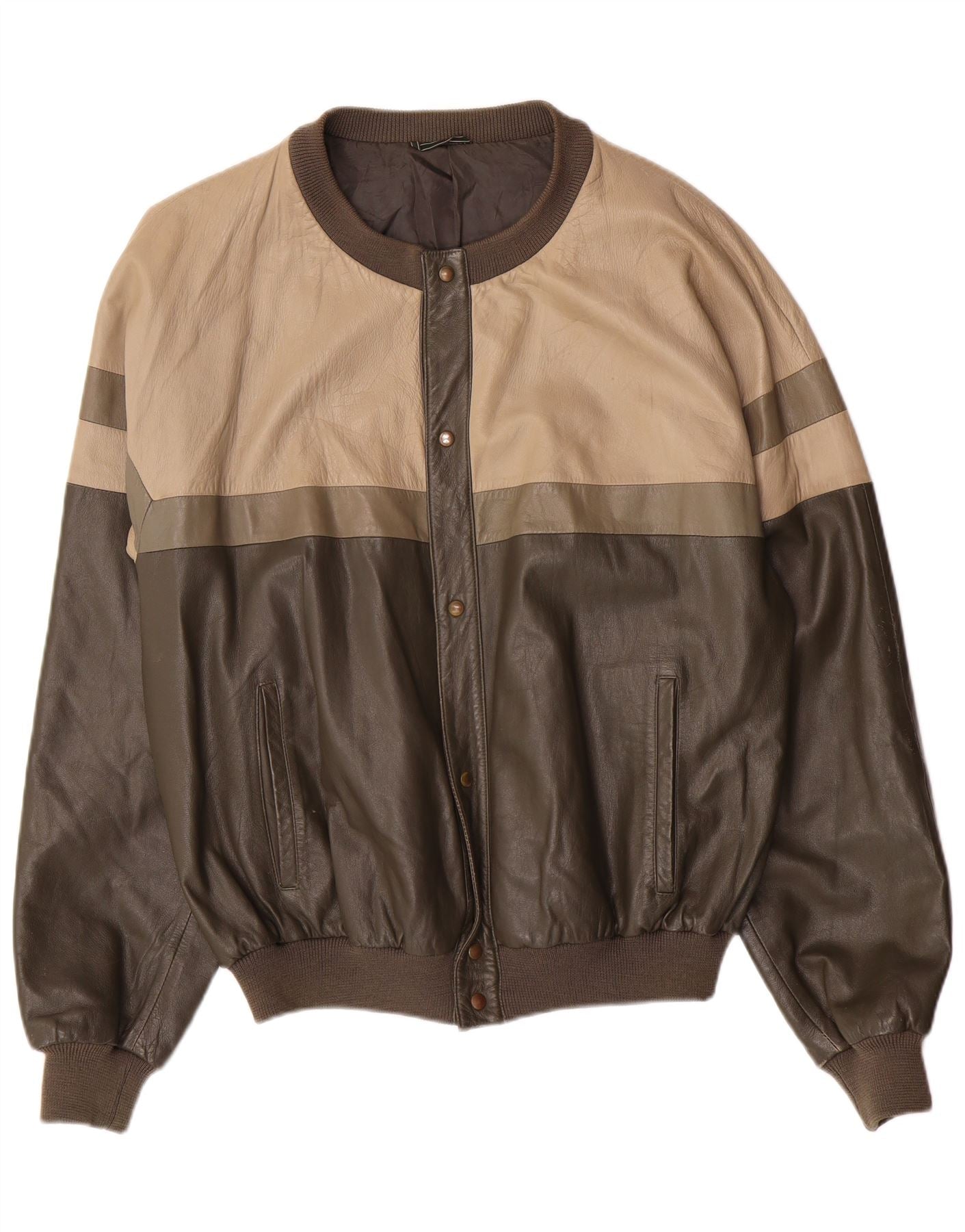 LAVORAZIONE ARTIGIANA Chaqueta para hombre IT 54 2XL Cuero color block caqui